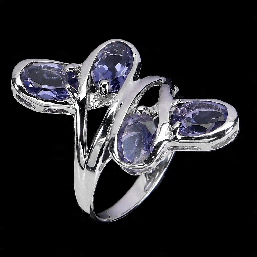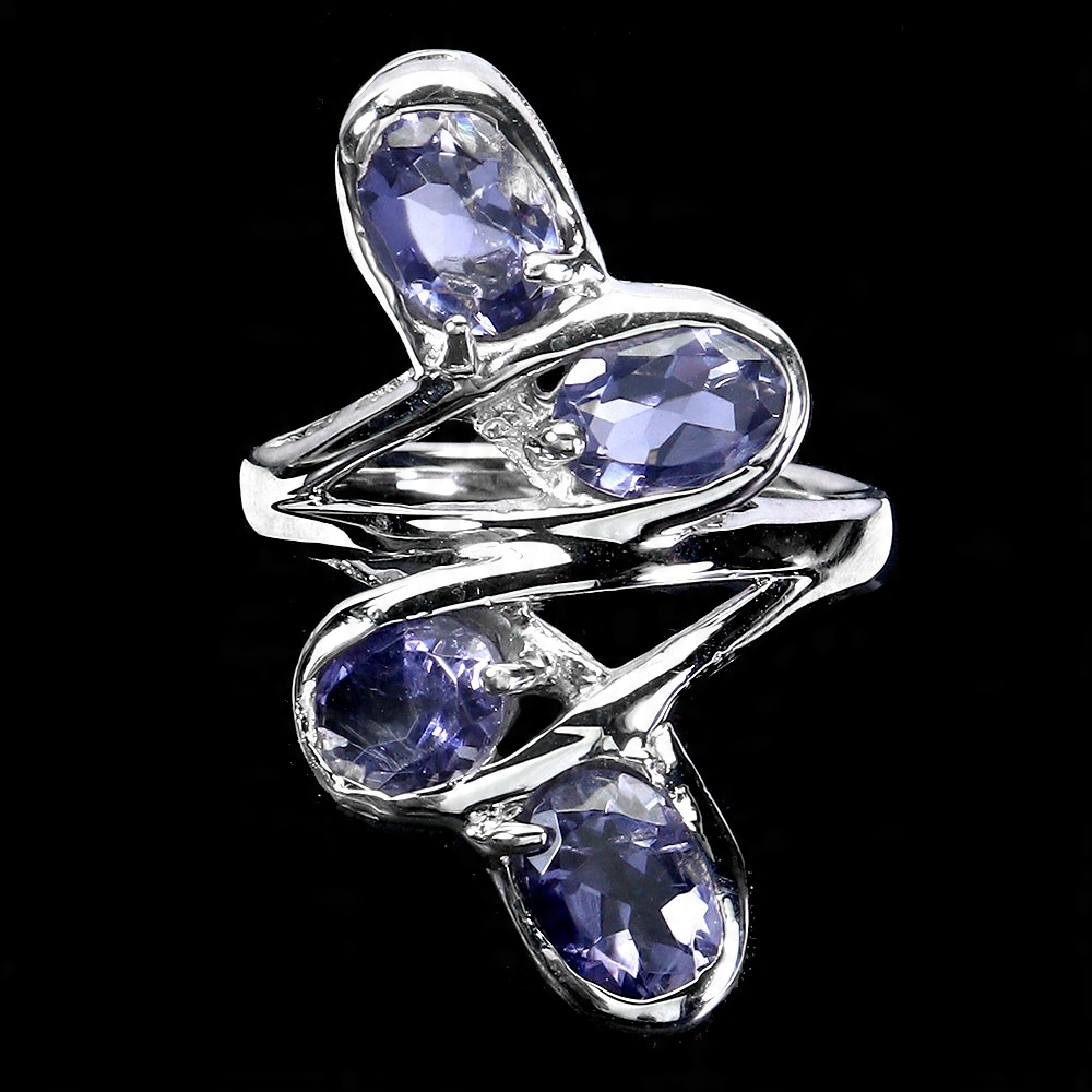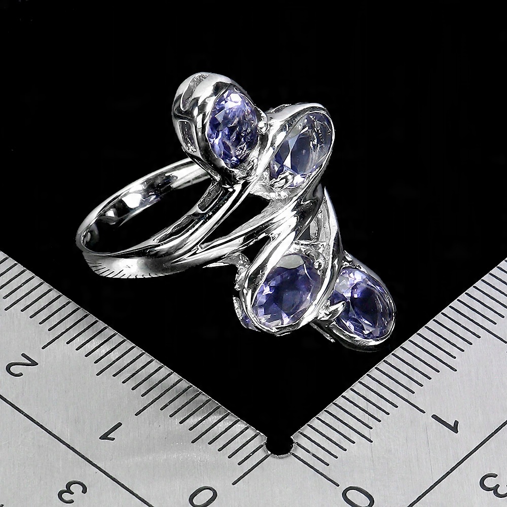 Pierścionek r 14 elegancki srebrny naturalne iolity zjawiskowy 925