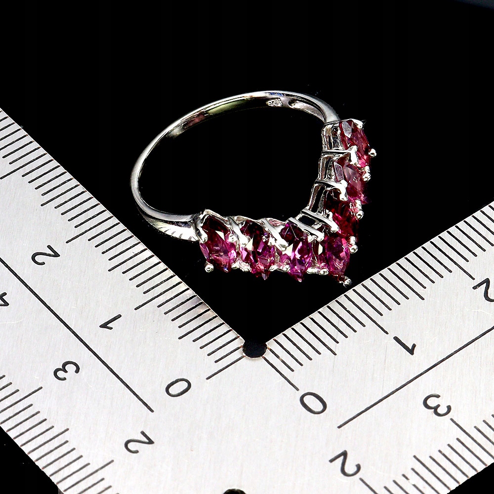 Pierścionek r 16 delikatny elegancki srebrny naturalne granaty rodolity 925