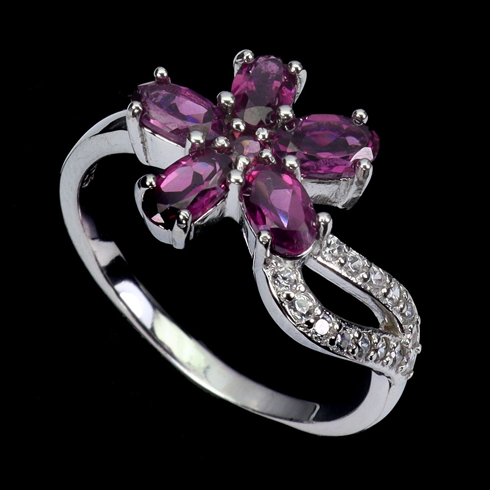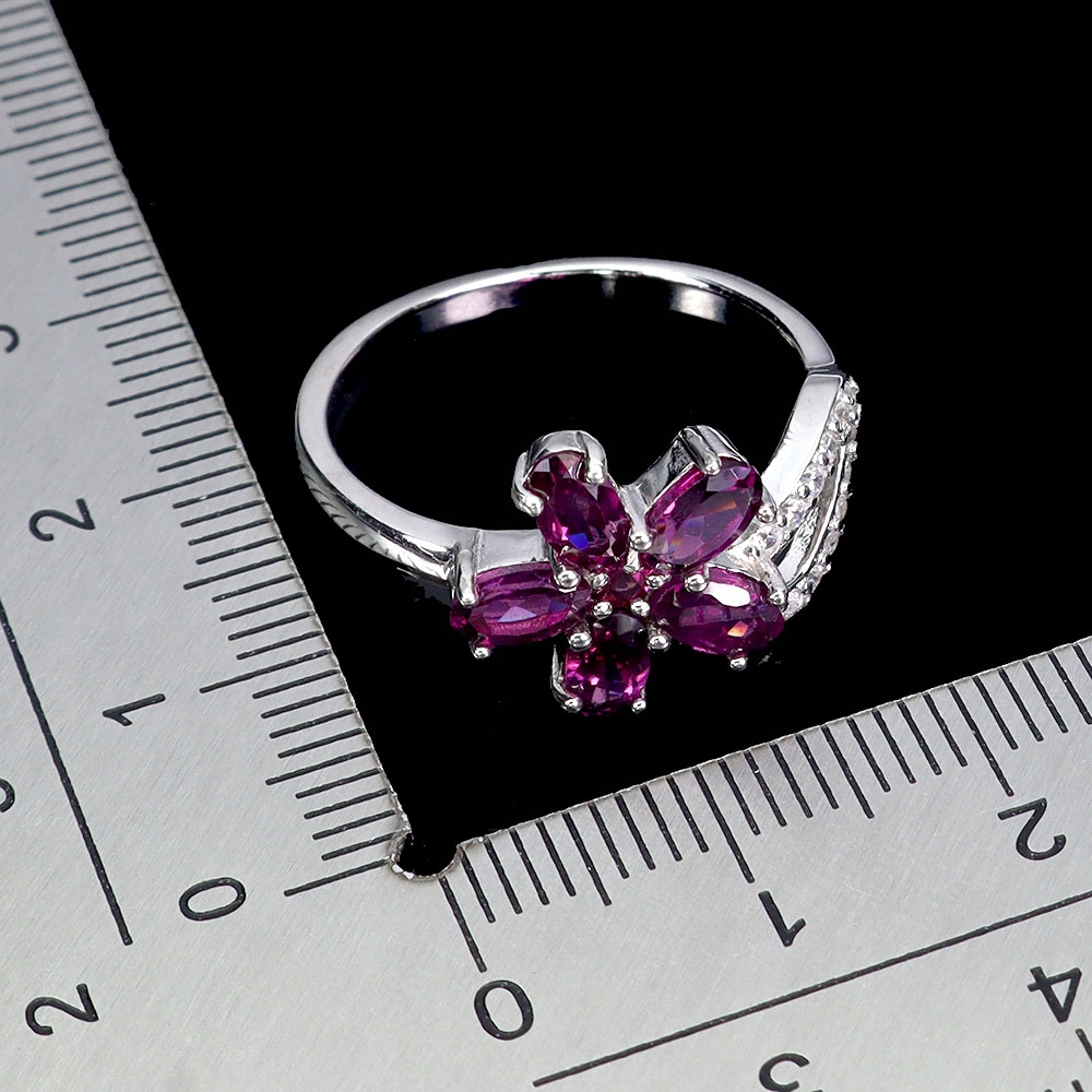 Pierścionek r 16 delikatny srebrny naturalne rodolity granaty kwiat