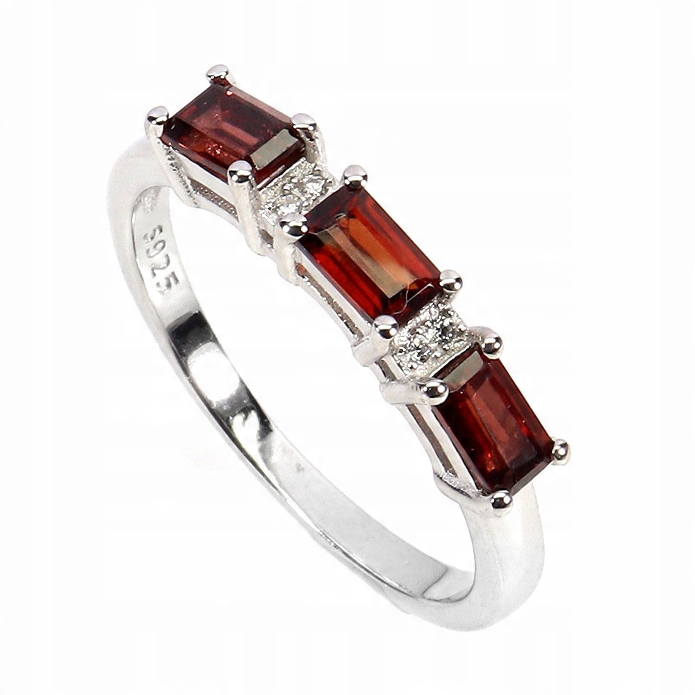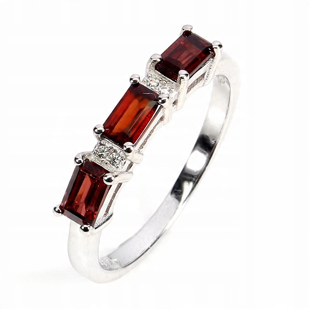Oferujemy Państwu pozłacany 14K białym złotem, srebrny - próba 925 - pierścionek z naturalnymi granatami i cyrkoniami.