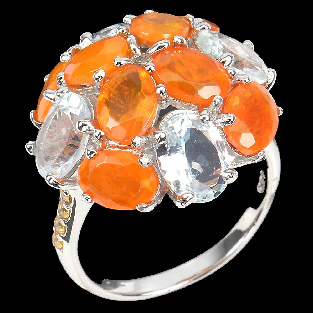 Pierścionek r 20 opale pomarańczowe akwamaryny 925