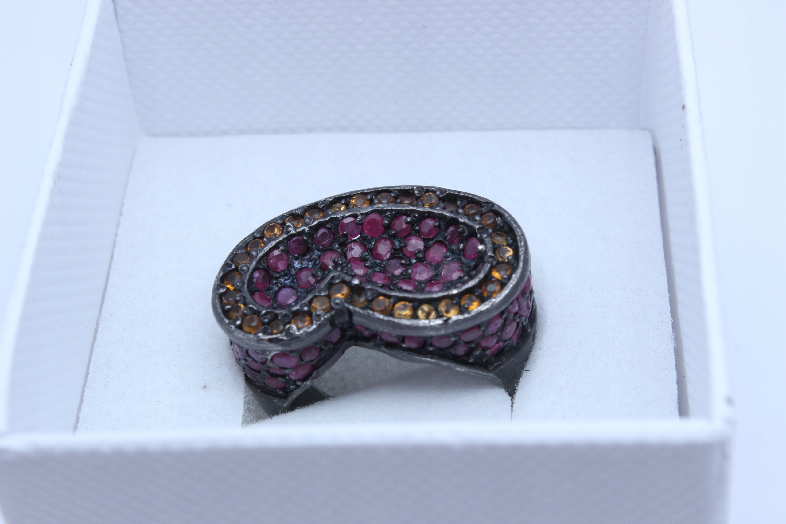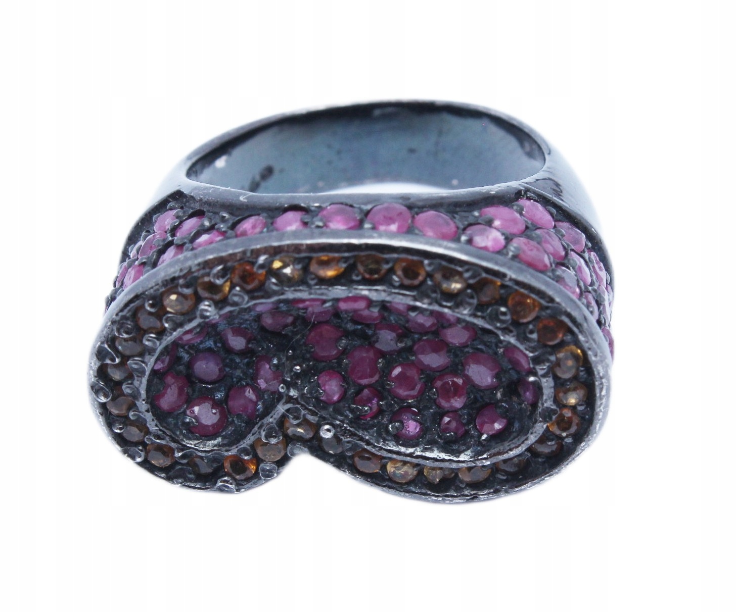 Pierścionek srebrny 925 szafiry rubiny piękny