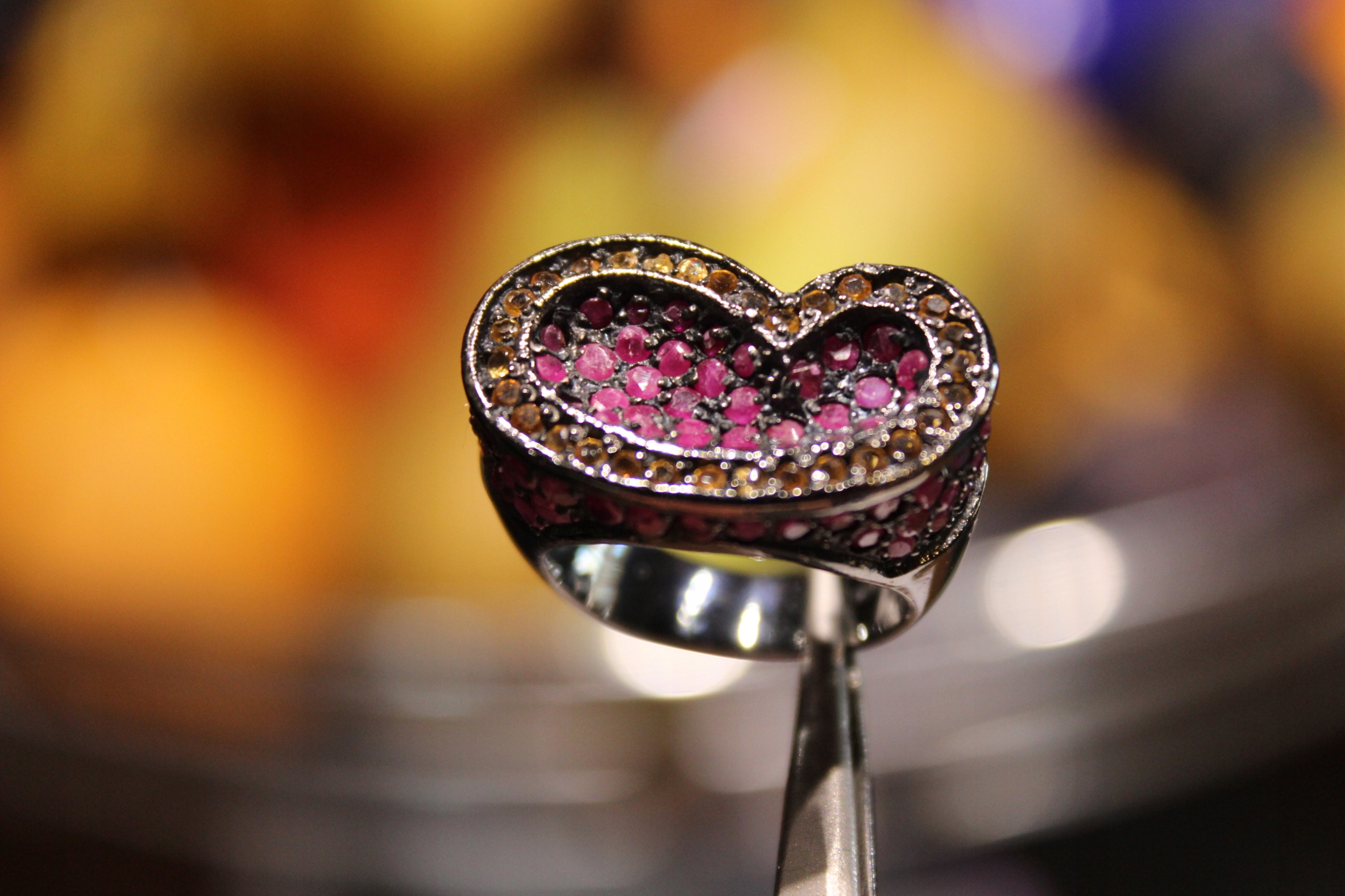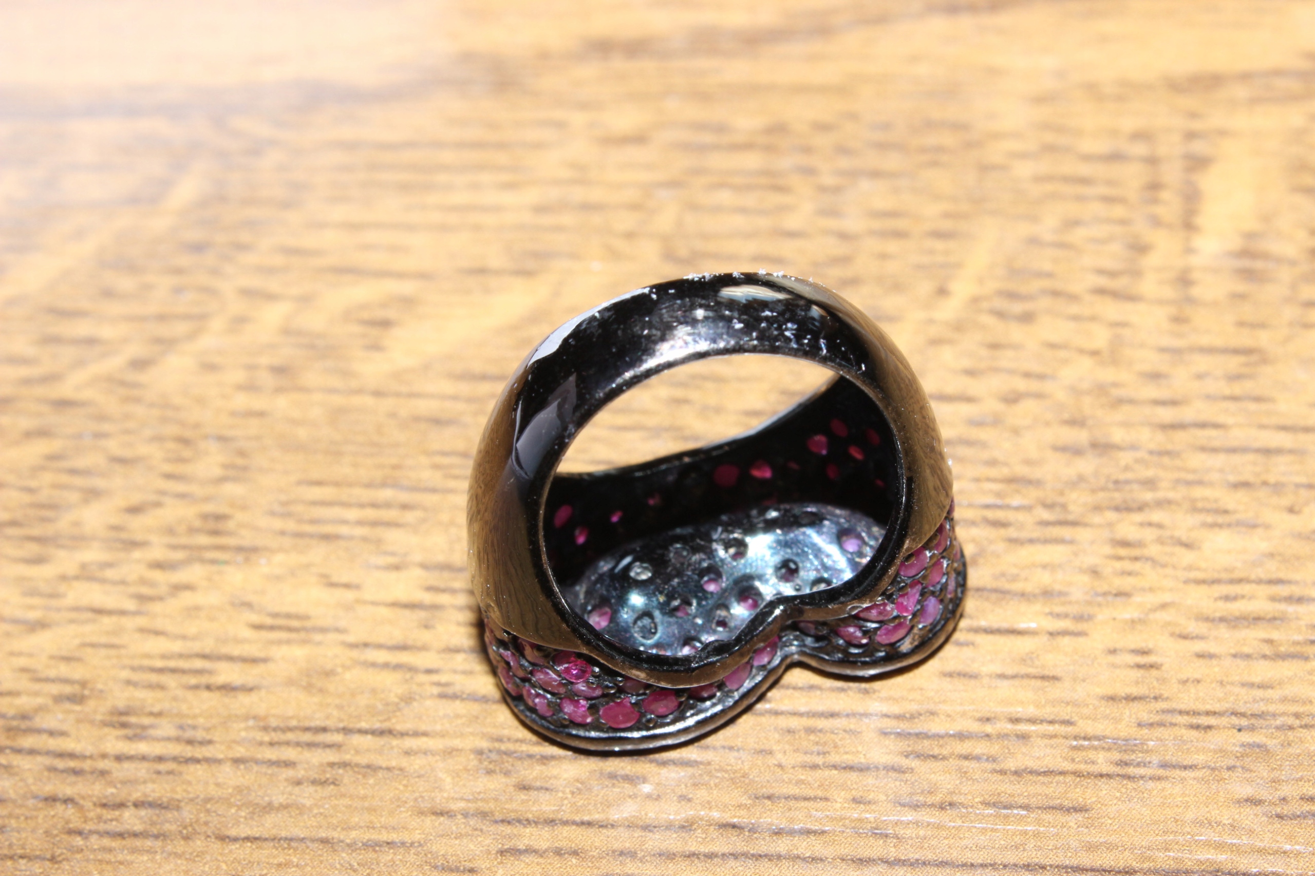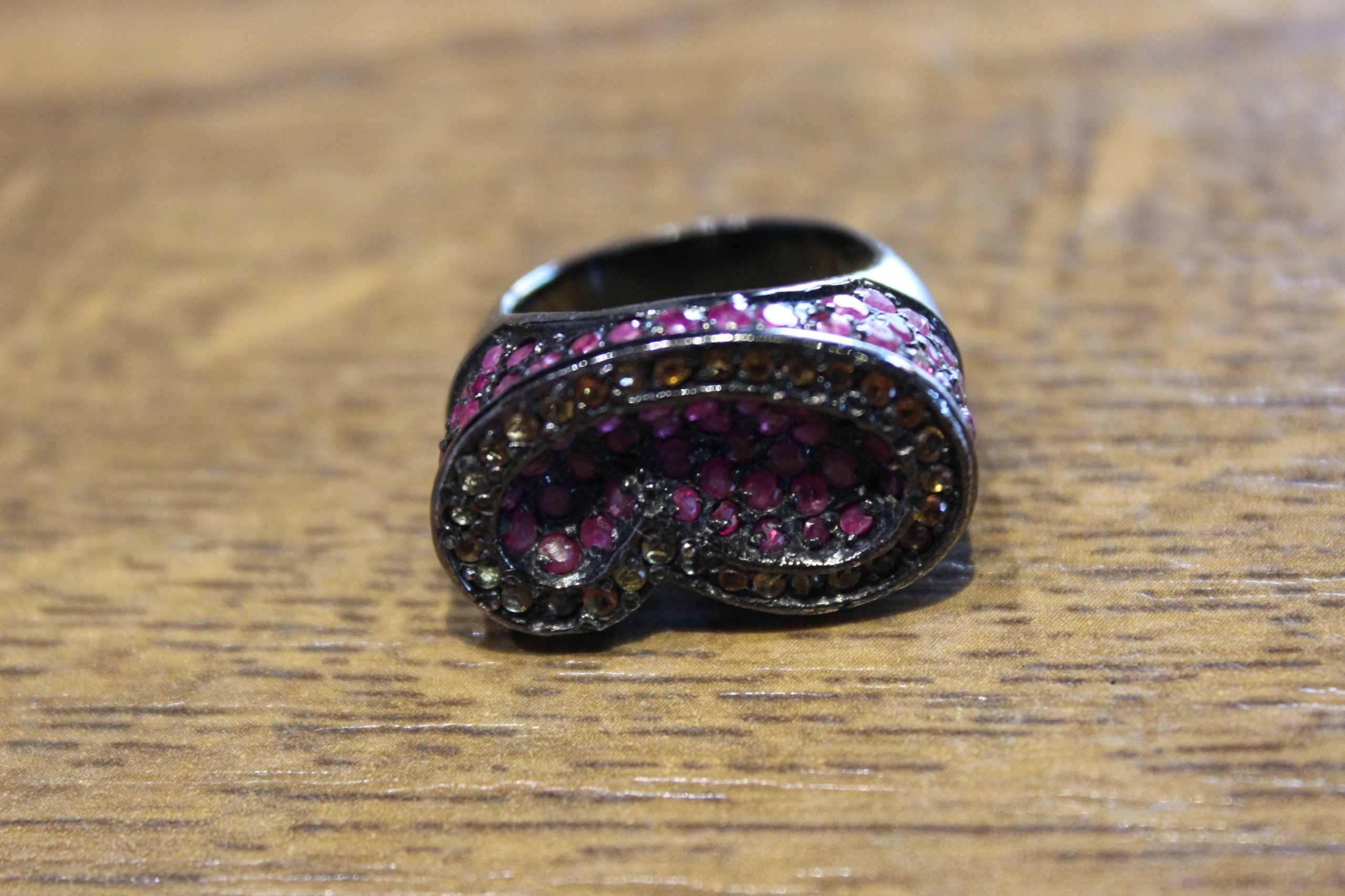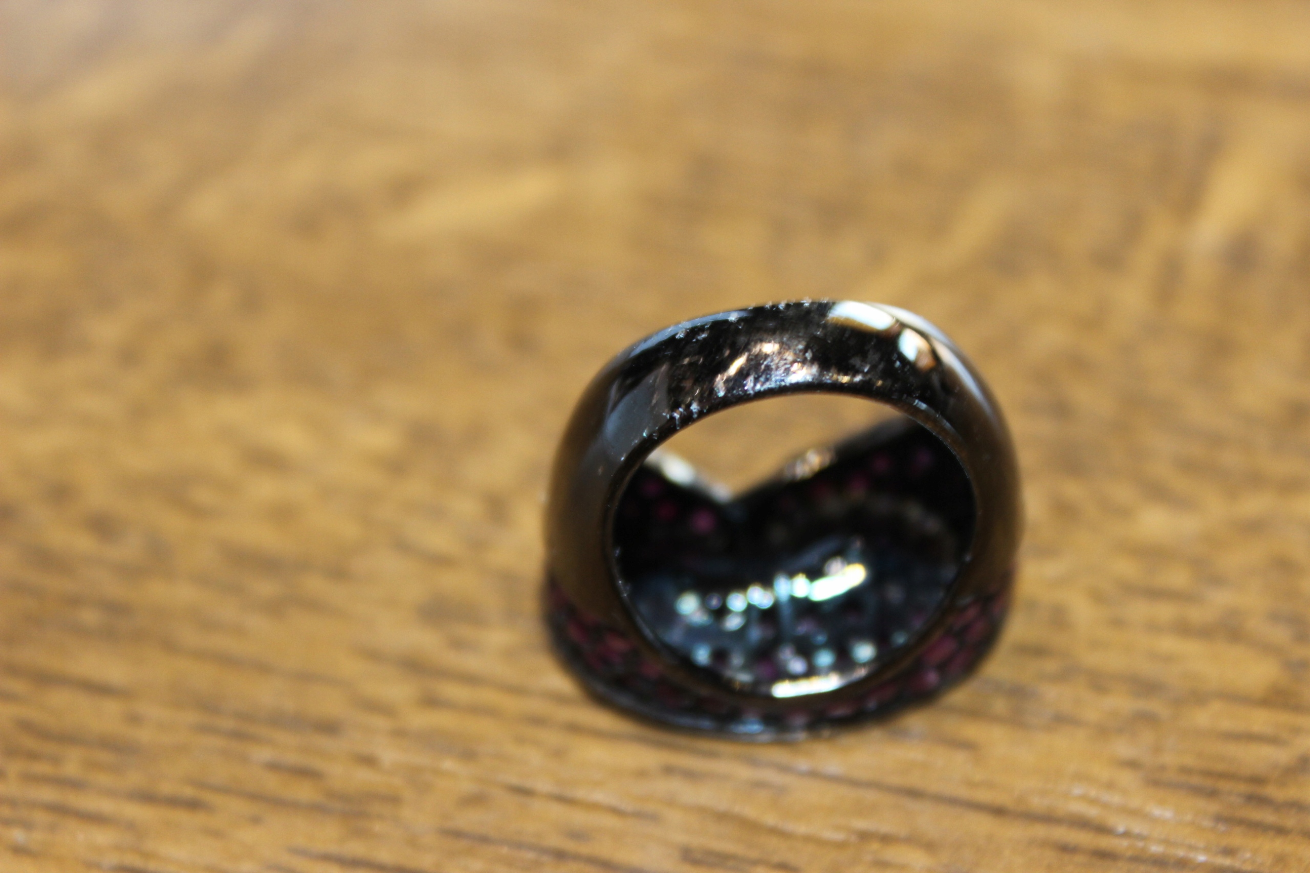 oferujemy Państwu nowy, rodowany na czarno, srebrny - próba 925 pierścionek z naturalnymi szafirami i rubinami.