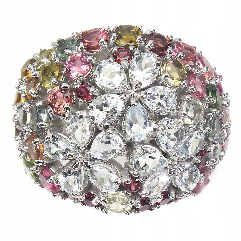 Pierścionek srebrny akwamaryny r 16.5 turmaliny
