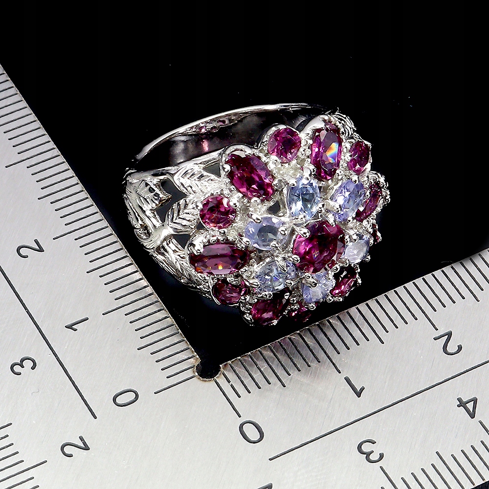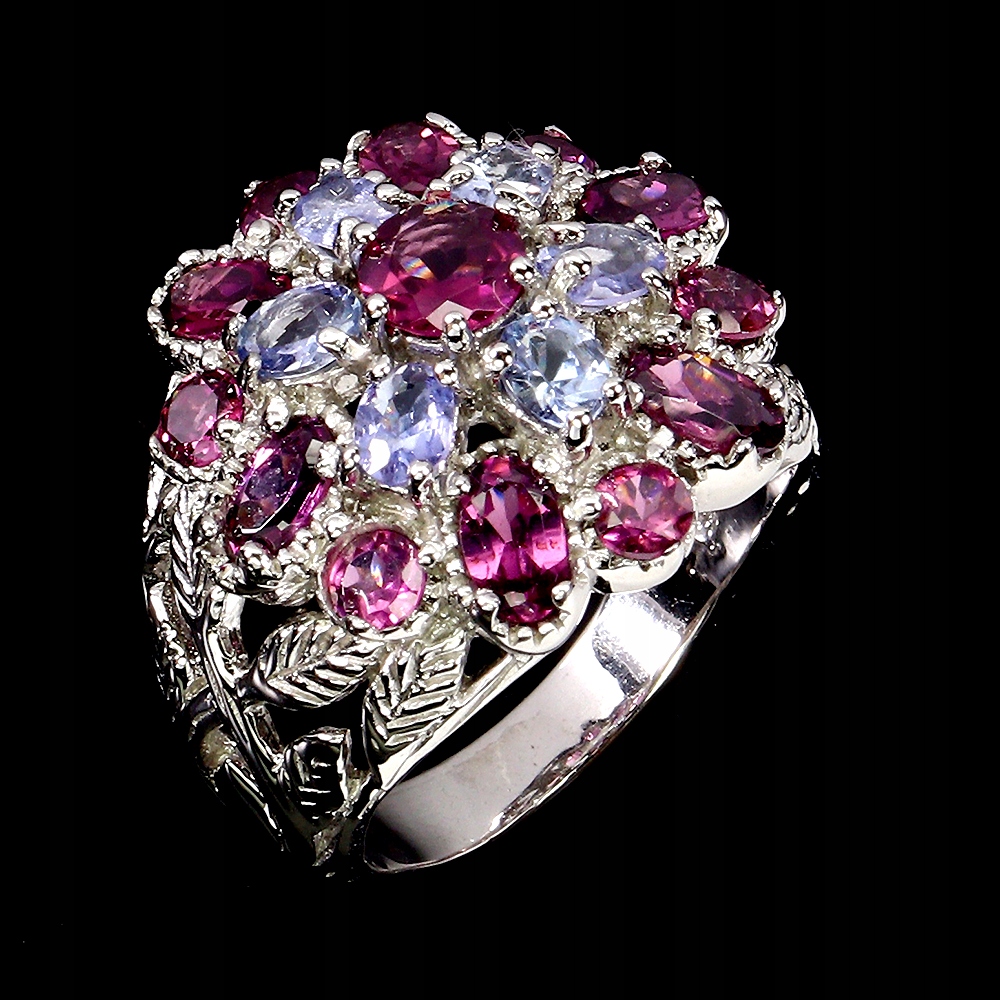 Pierścionek srebrny elegancki naturalne rodolity granaty tanzanity r 16 925