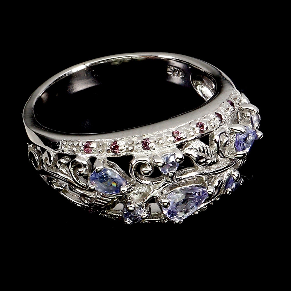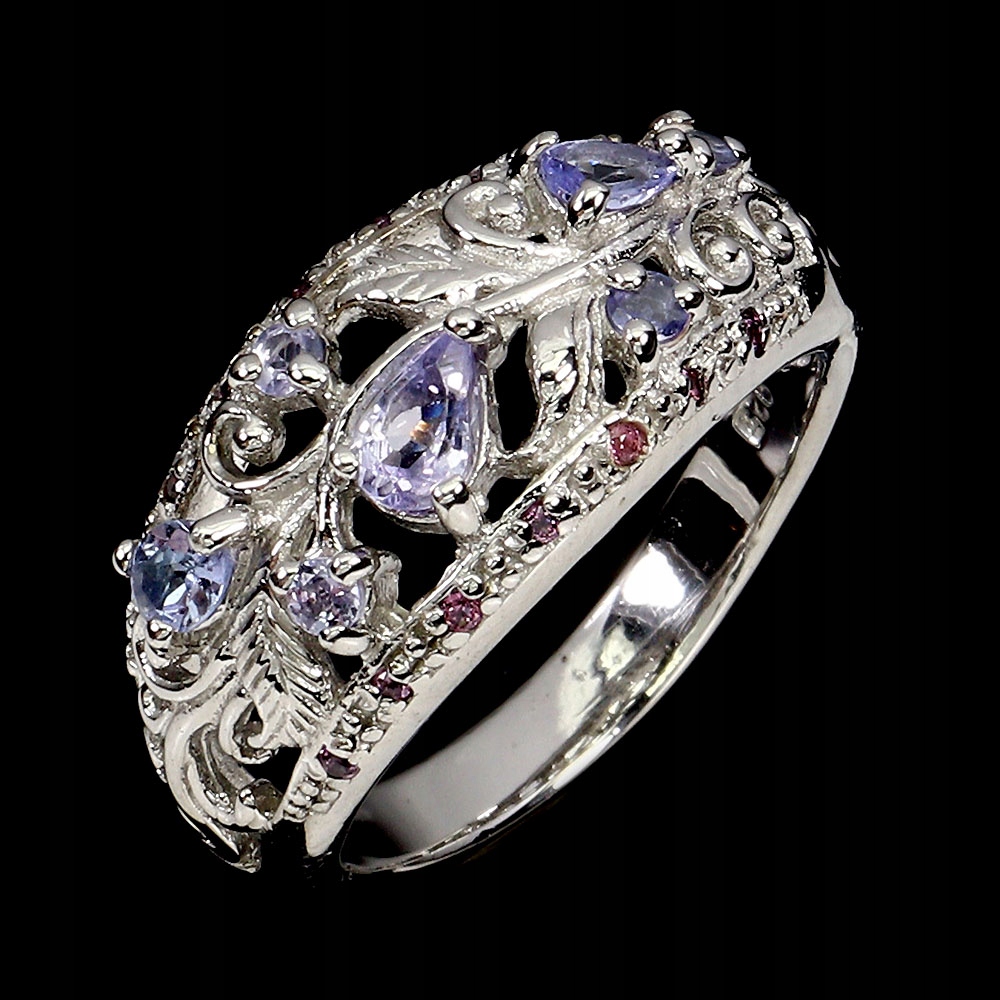 Pierścionek srebrny naturalne rodolity granaty tanzanity r 17 elegancki