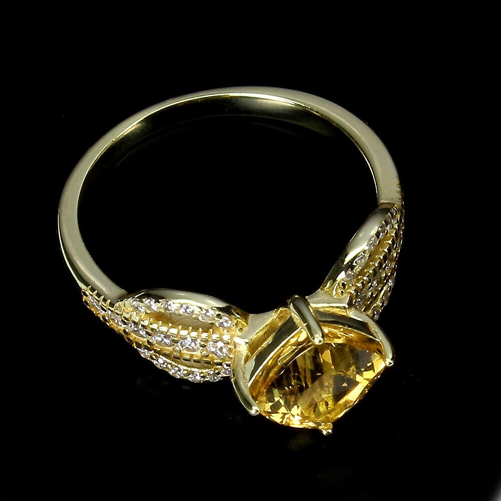 Oferujemy Państwu nowy, pozłacany żółtym 14K złotem, srebrny - próba 925 pierścionek z naturalnym żółtym berylem i cyrkoniami.
