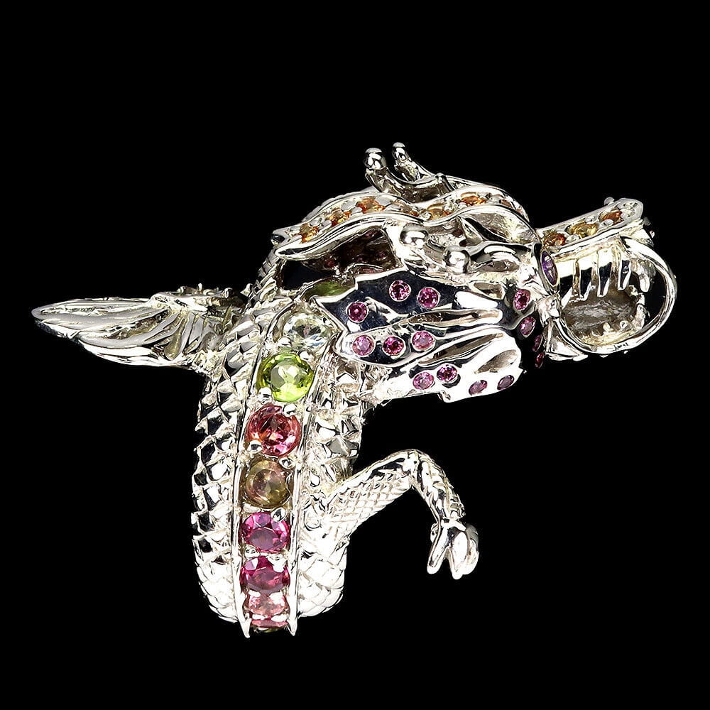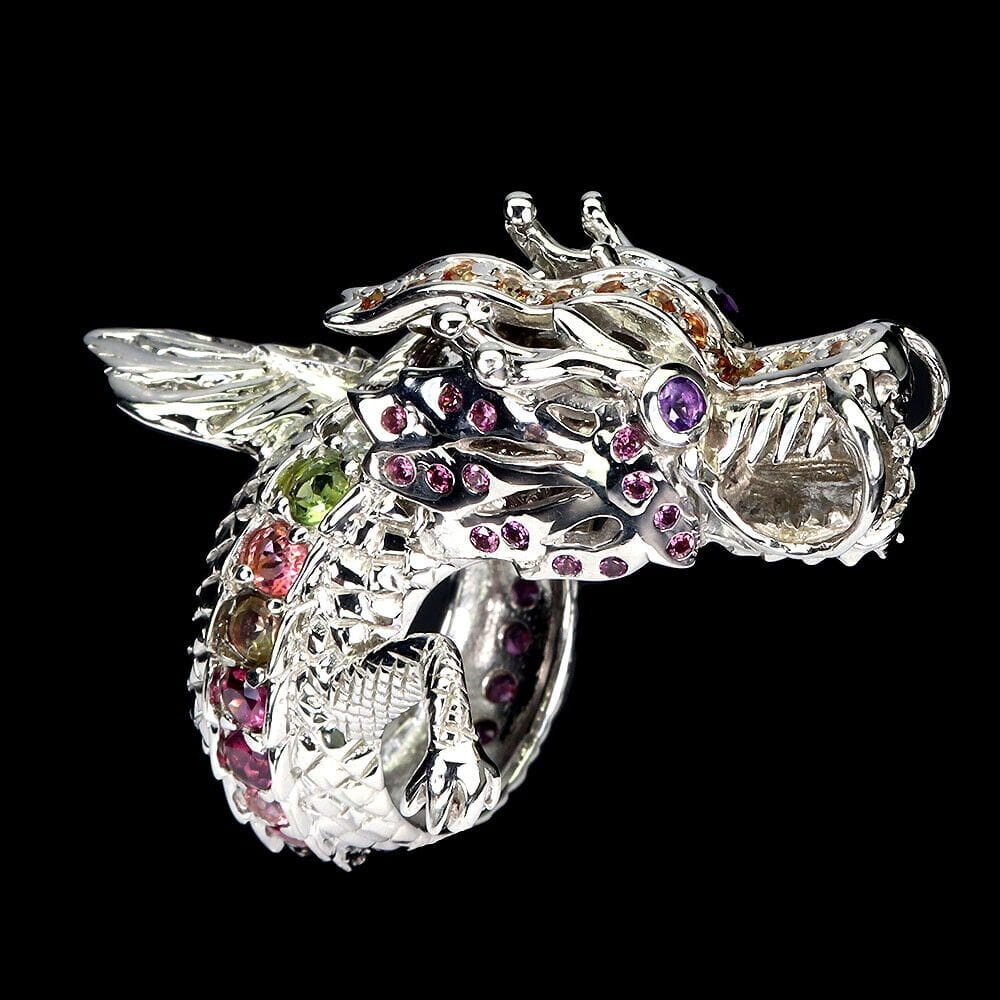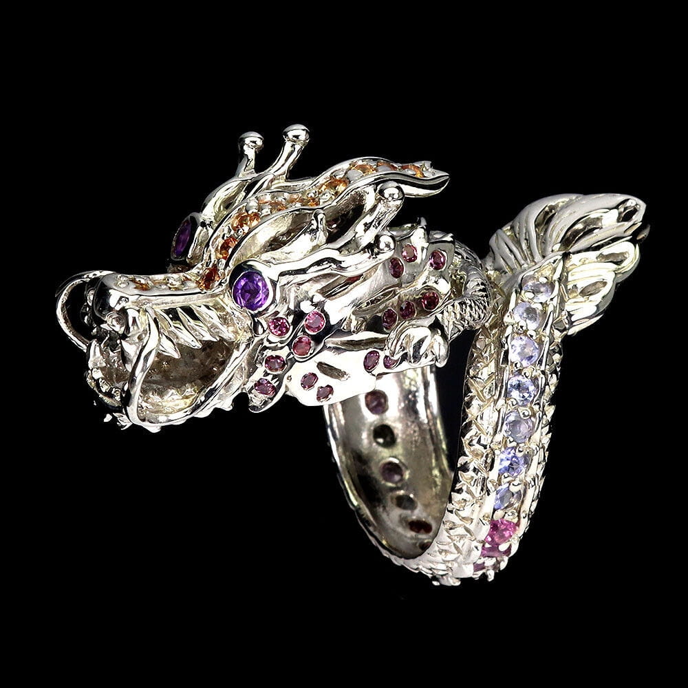 Pierścionek srebro 925 smok turmaliny ametysty szafiry granaty r 16