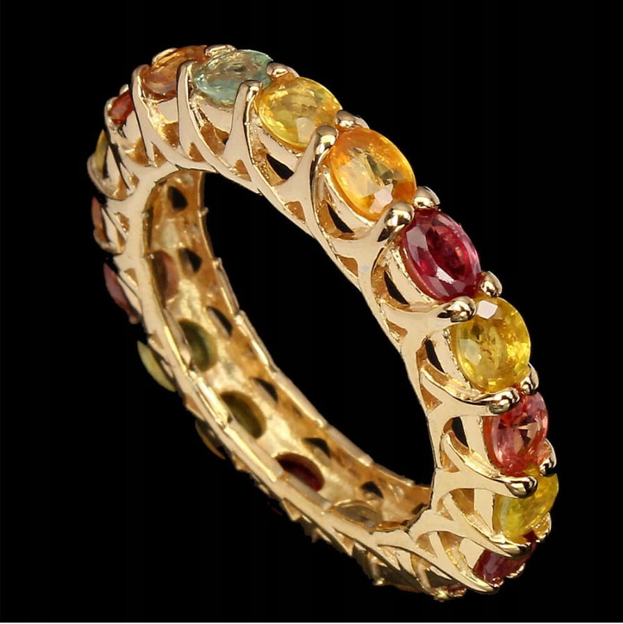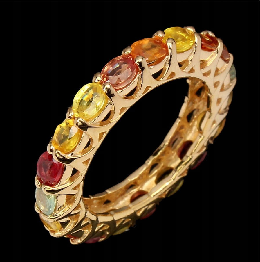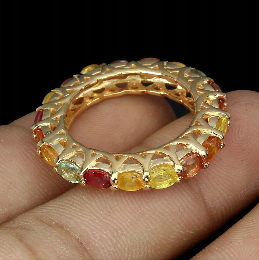 oferujemy nowy pozłacany 14K żółtym złotem, srebrny - próba 925 pierścionek z naturalnymi szafirami Songea.
