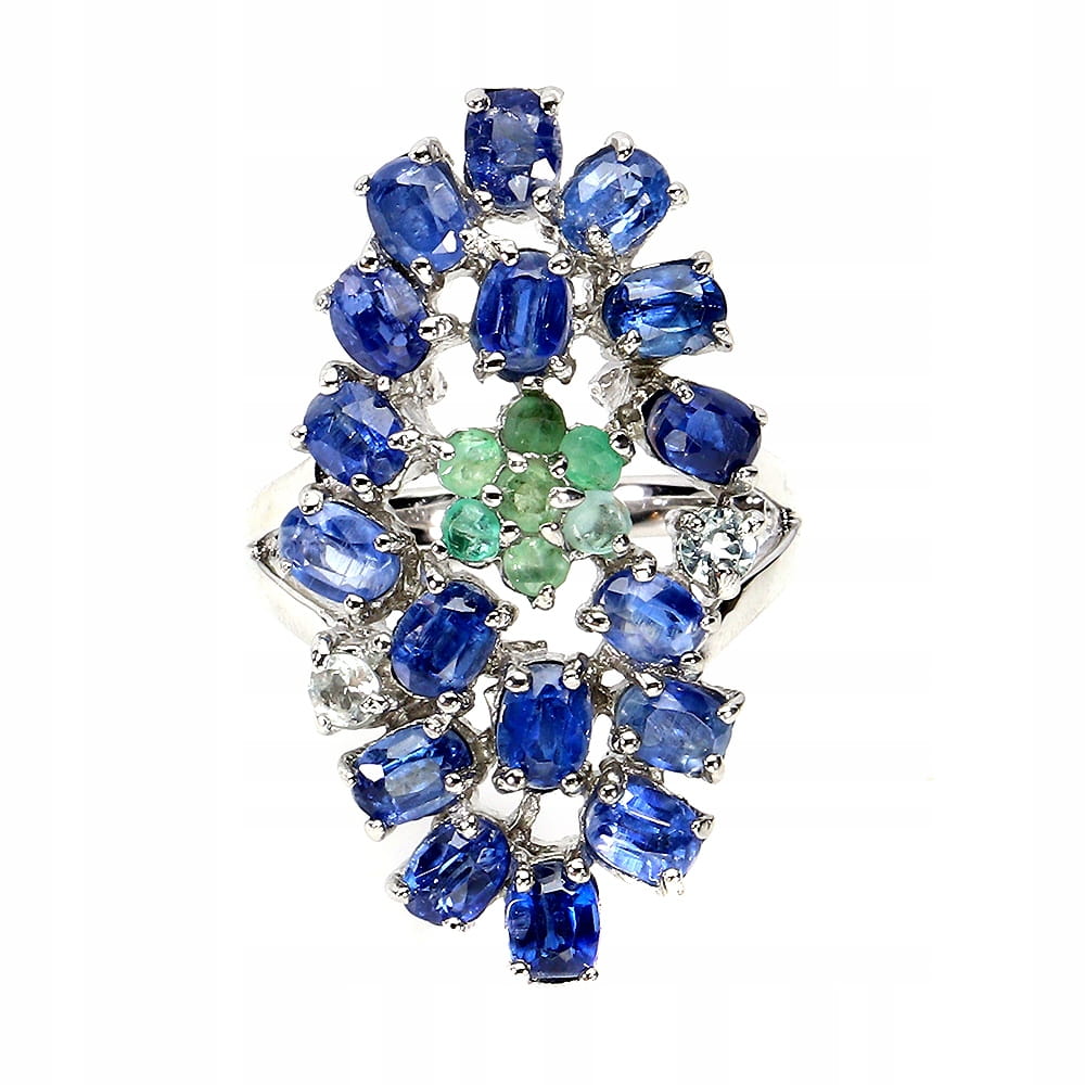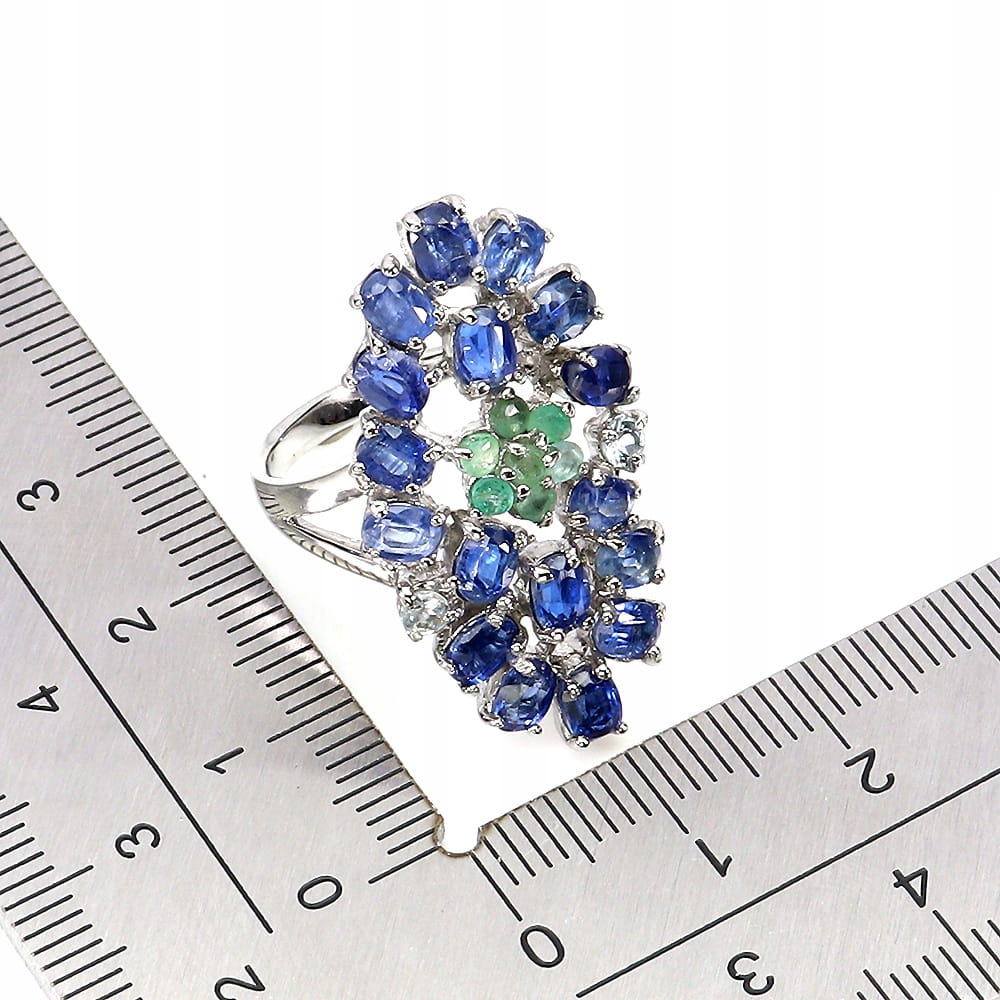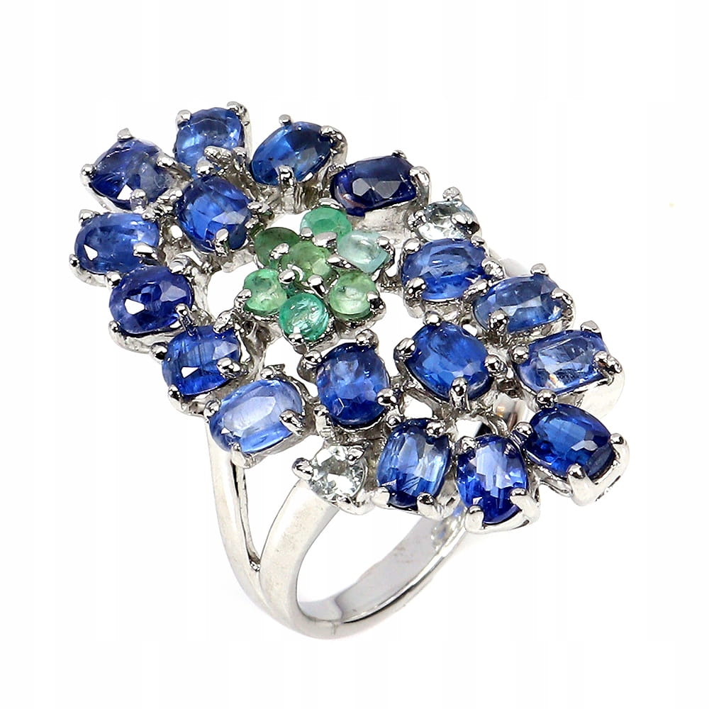 Pierścionek zjawiskowy r 14 naturalne kianity szmaragdy srebro 925
