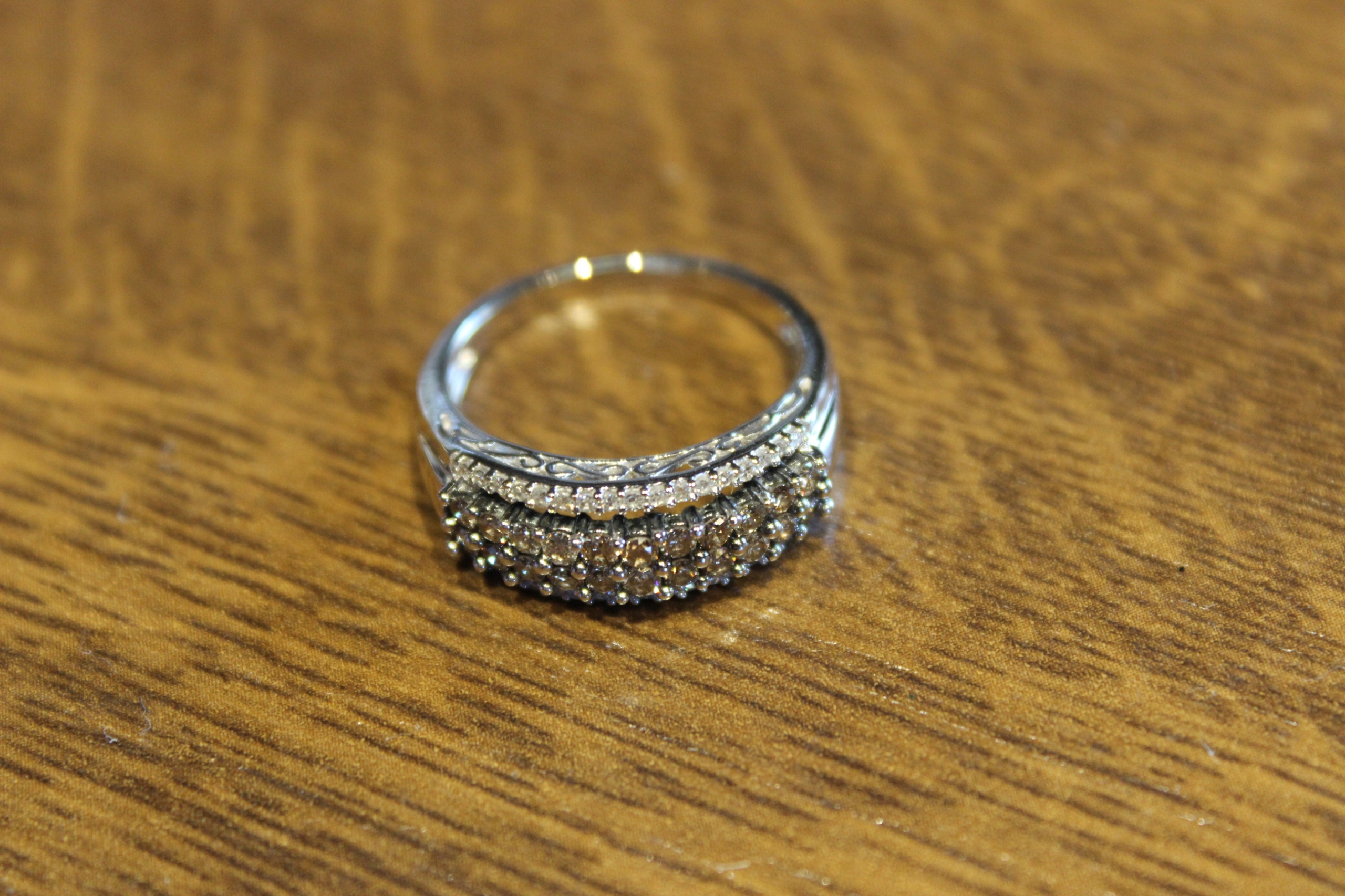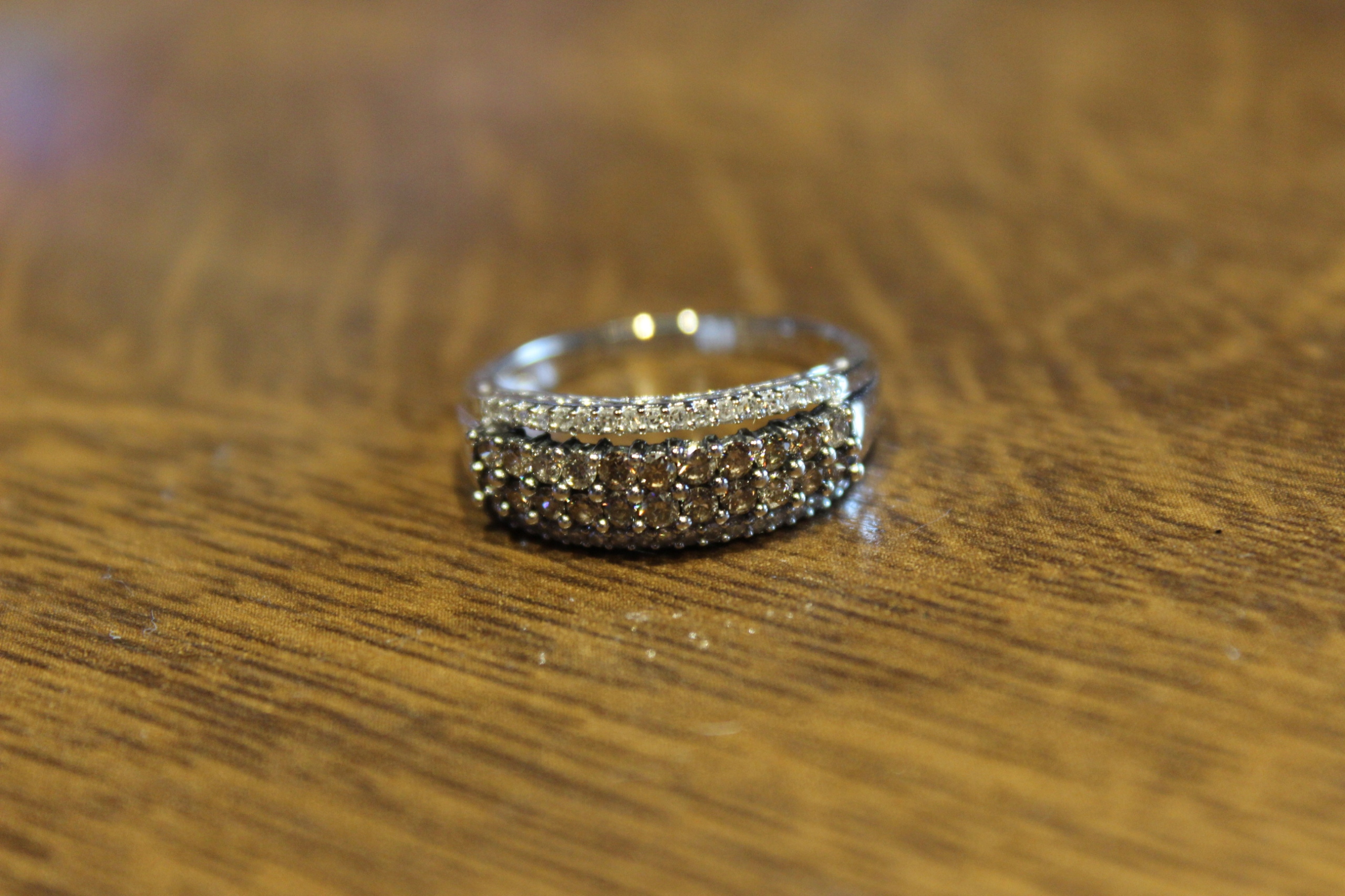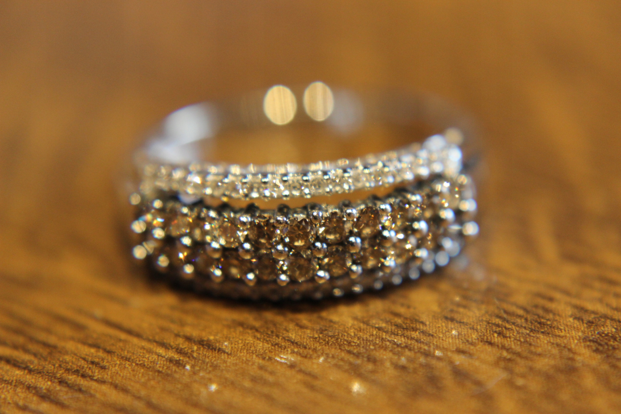 Kamień centralny: diament syntetyczny 22 szt. około 0.22ct. Czystość SI. Barwa brązowa.