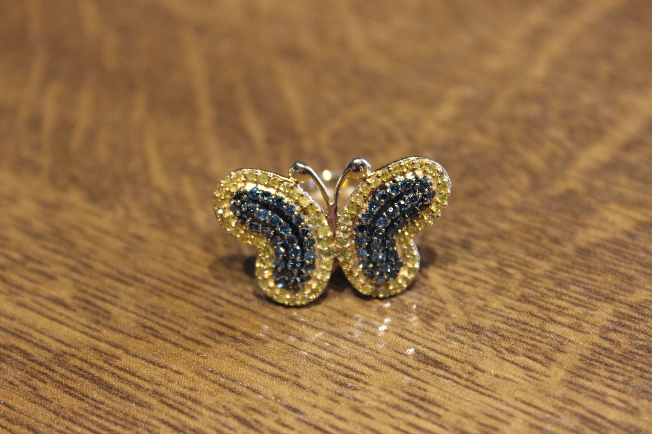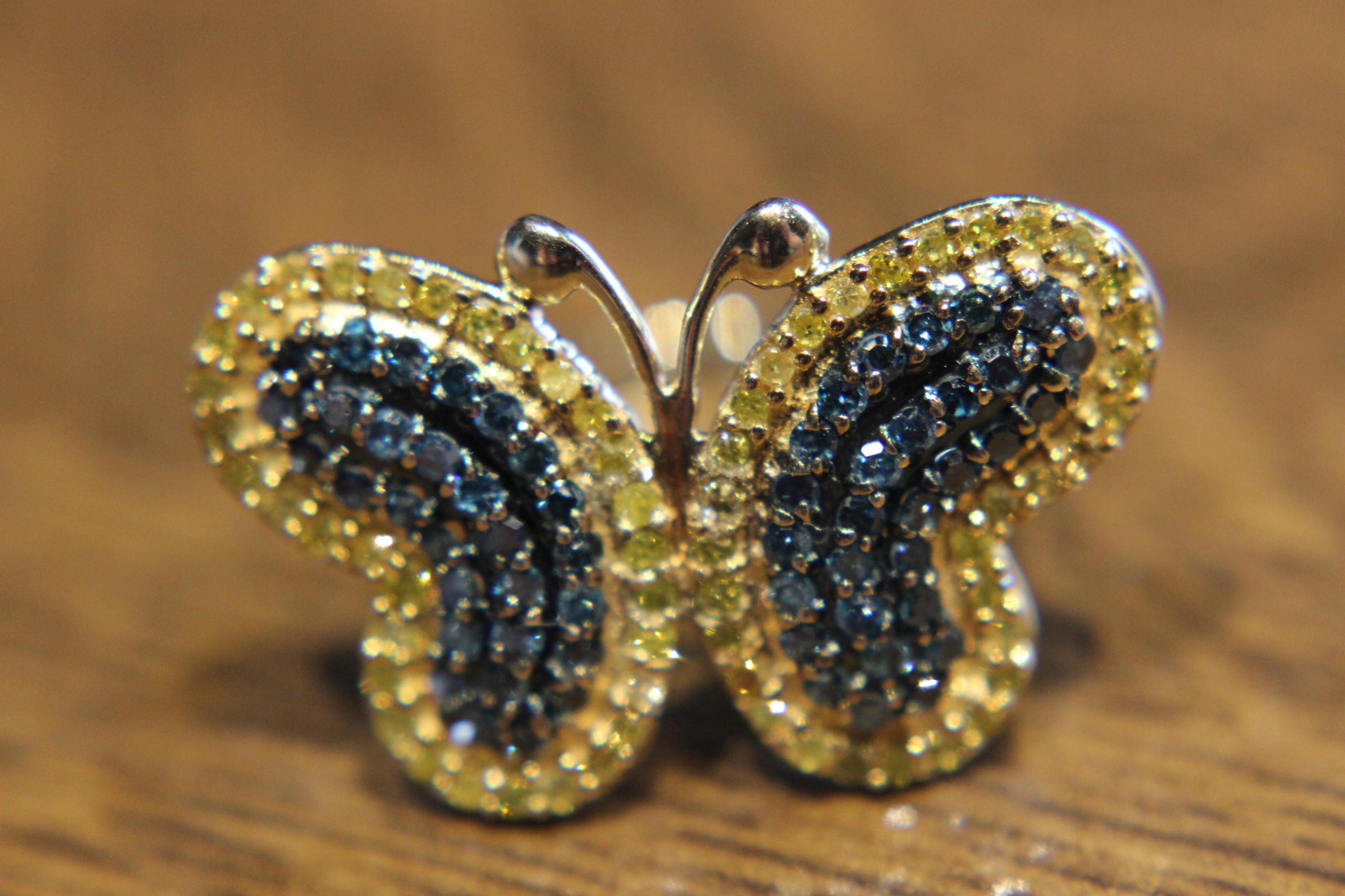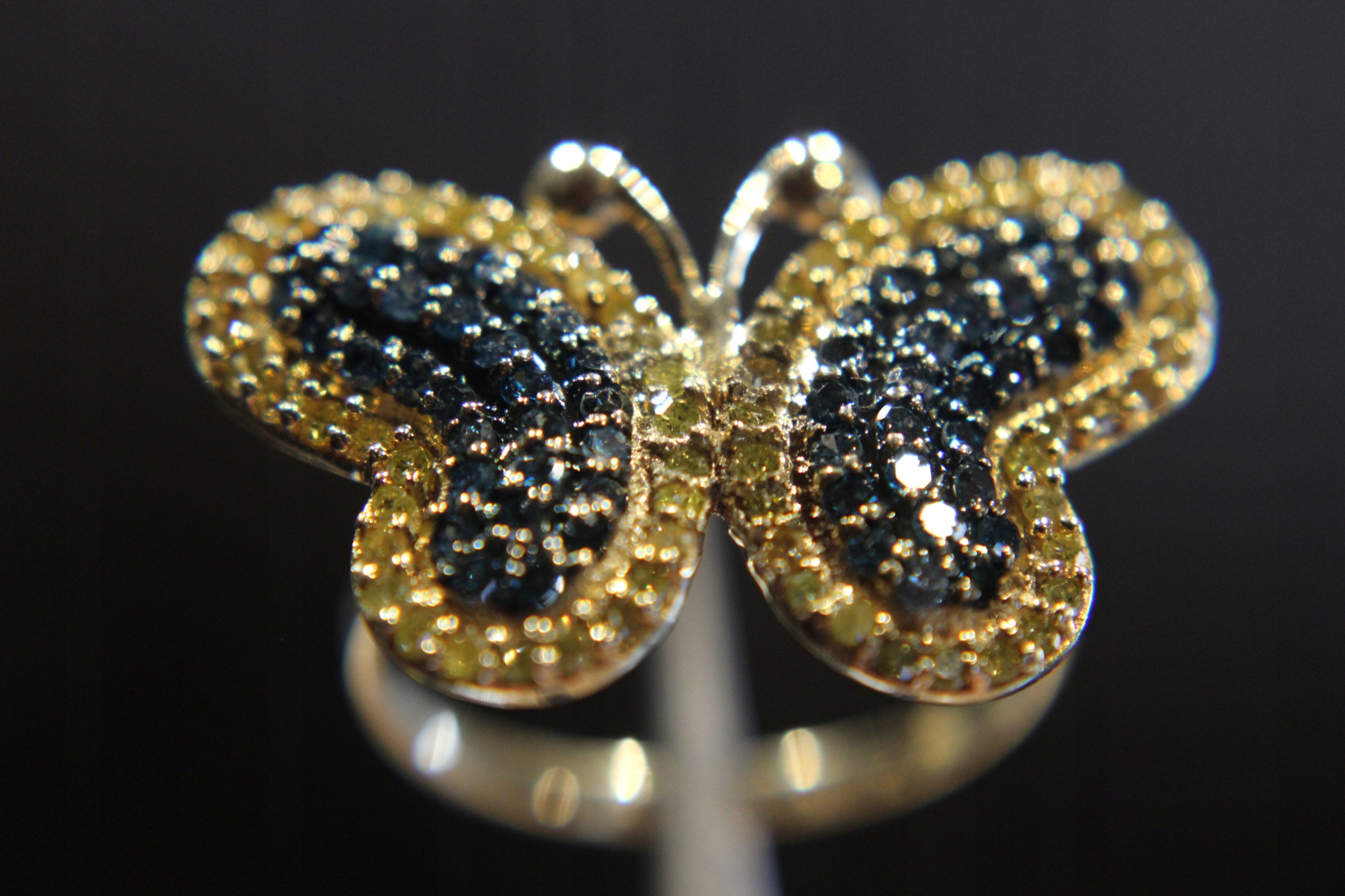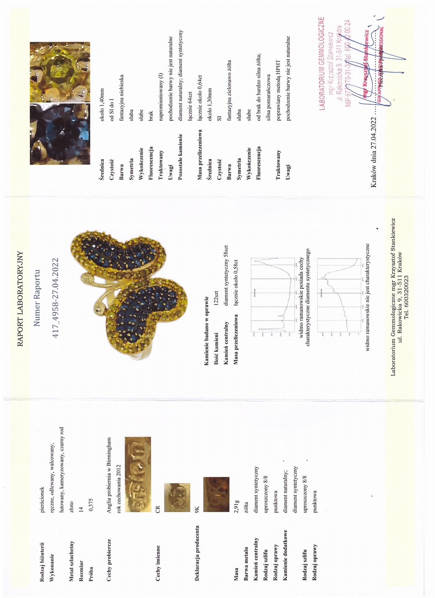 Pierścionek złoty diamenty r 14 motyl certyfikat