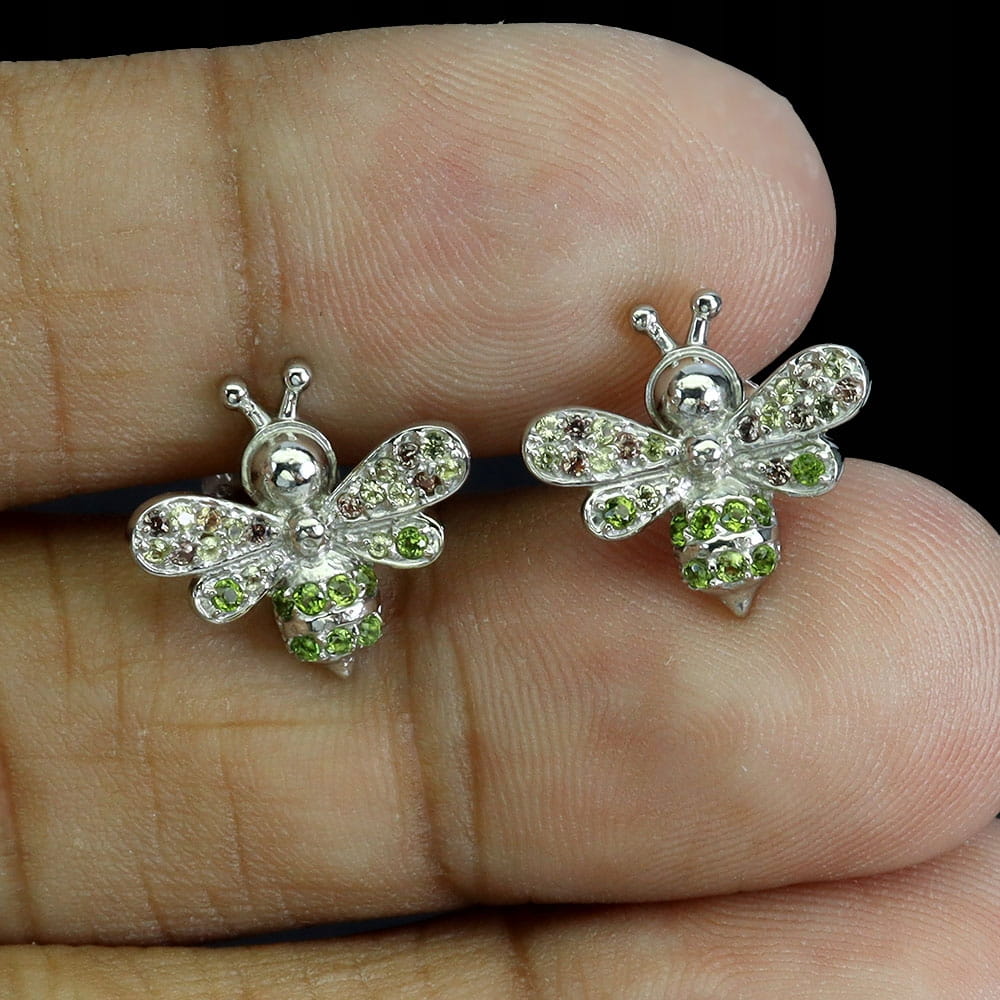Pszczoła delikatne kolczyki srebrne 925 naturalne szafiry Songea diopsydy 3