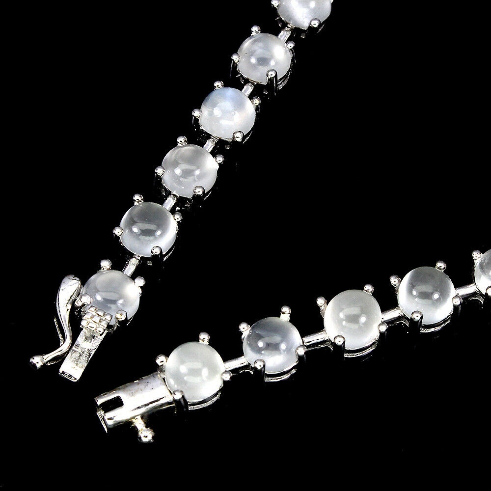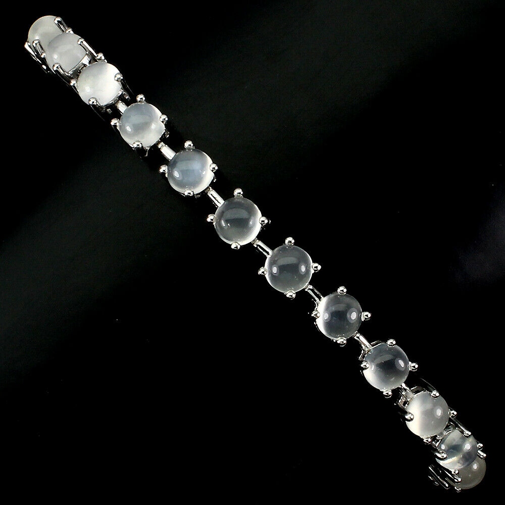 oferujemy Państwu nową, pozłacaną 14k białym złotem, srebrną - próba 925 bransoletę z naturalnymi kamieniami księżycowymi - kocie oko.