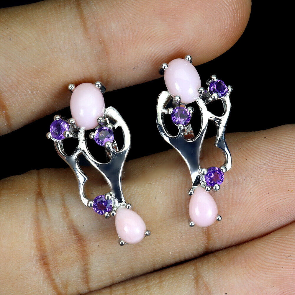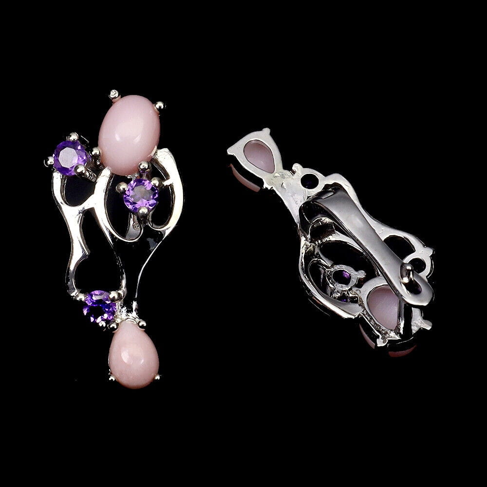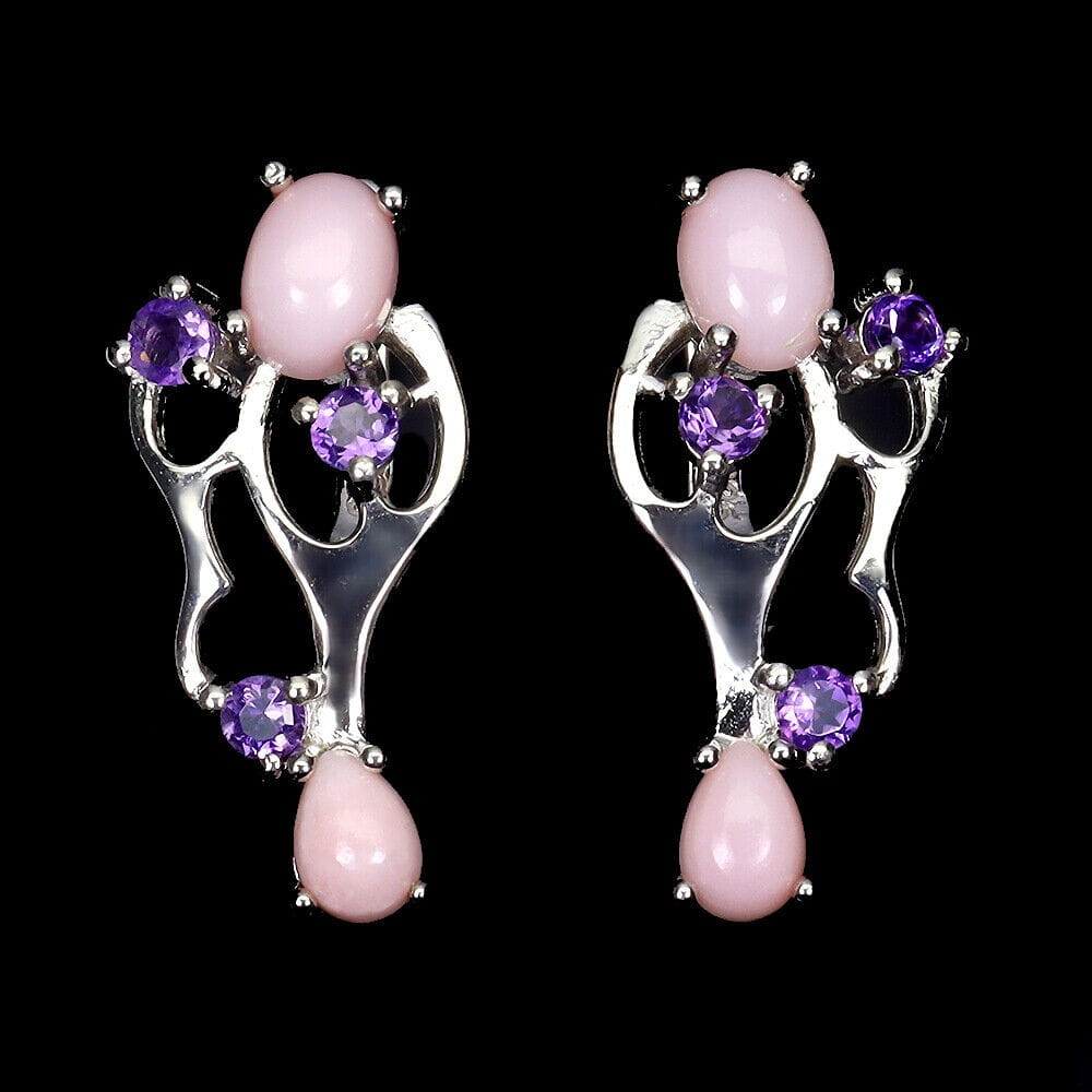 Srebrne 925 kolczyki naturalne różowe opale ametysty 3