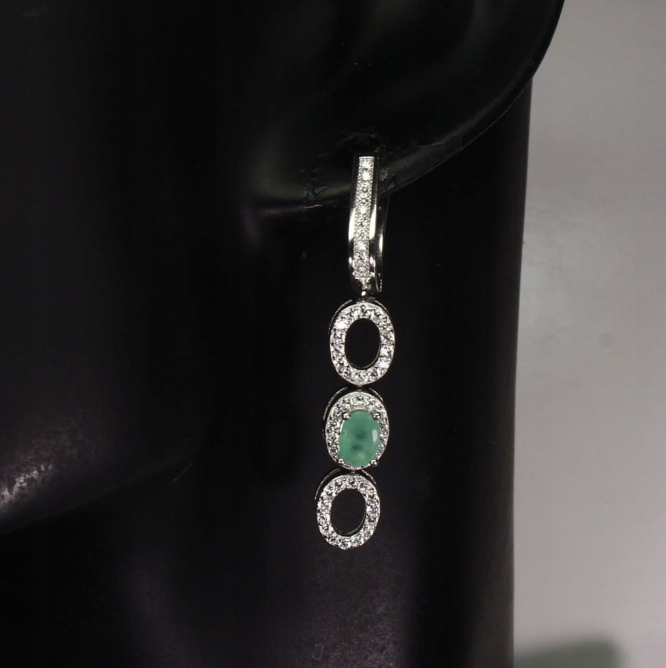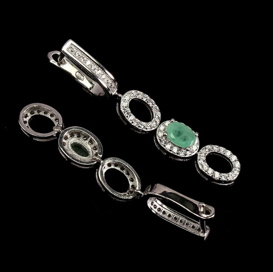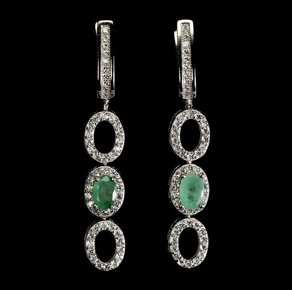 Srebrne 925 kolczyki naturalne szmaragdy cyrkonie