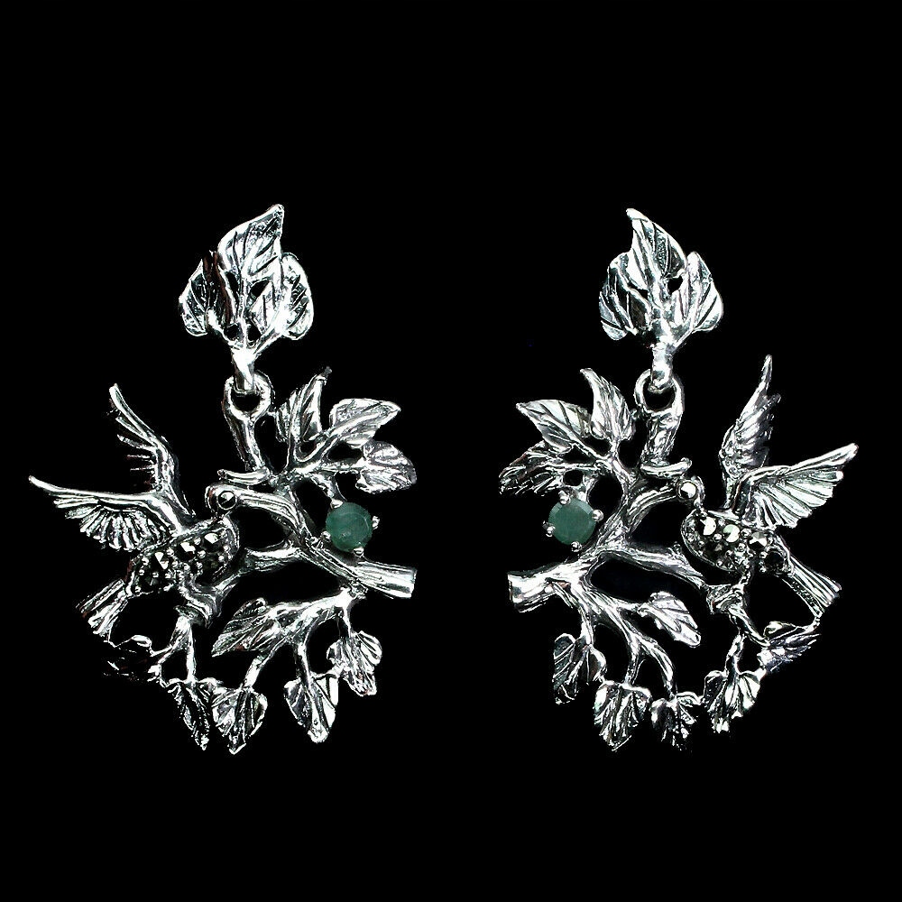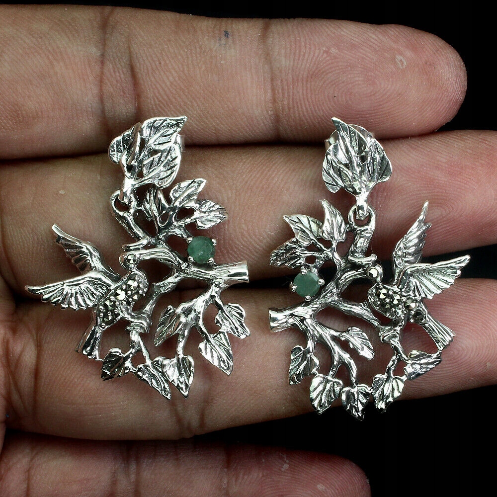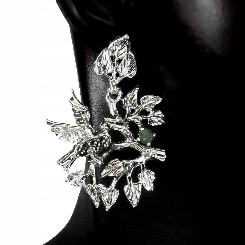 Srebrne 925 kolczyki naturalne szmaragdy markazyty