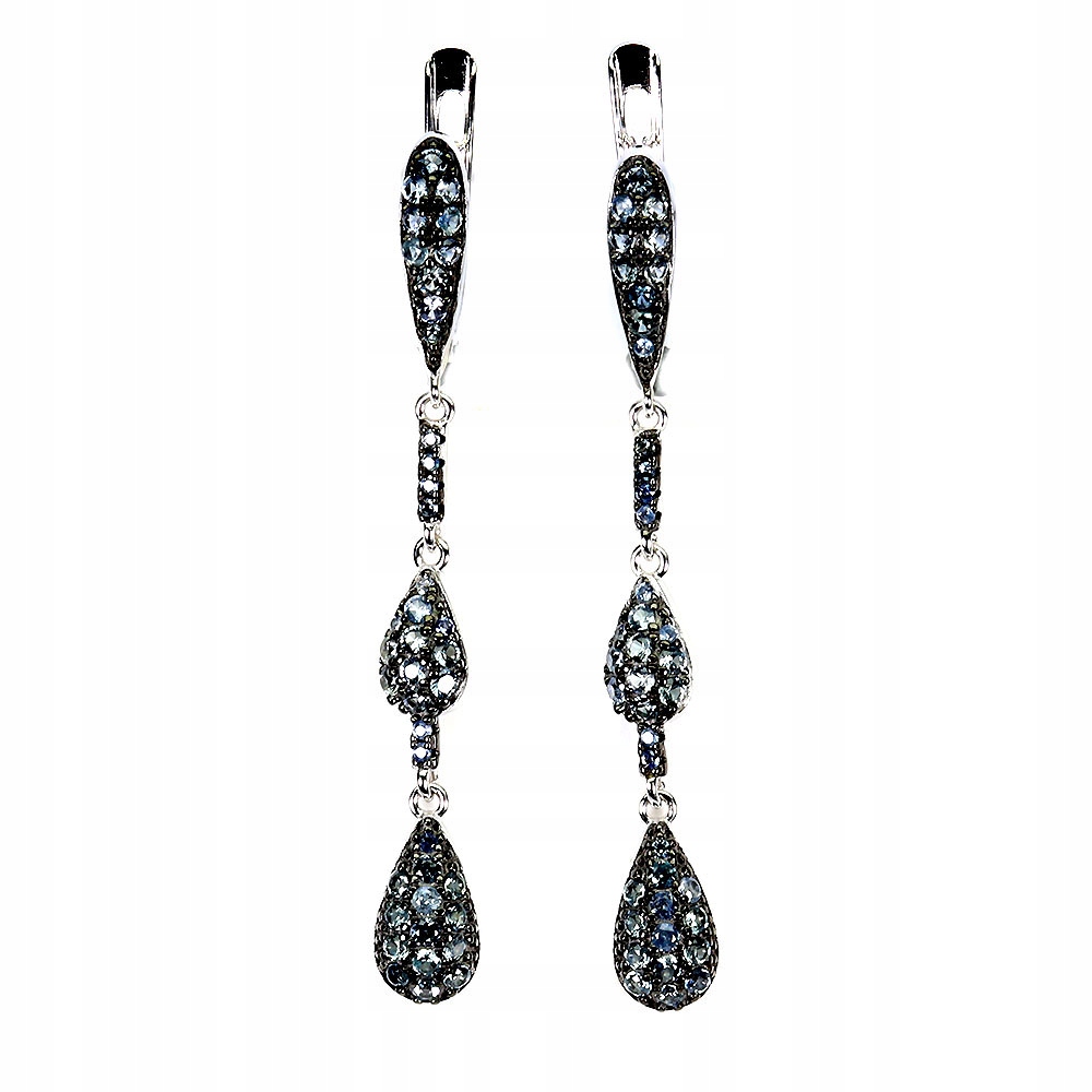oferujemy Państwu pozłacane białym złotem 14K i pokryte czarnym rodem, srebrne - próba 925 - delikatne kolczyki z naturalnymi niebieskimi szafirami.