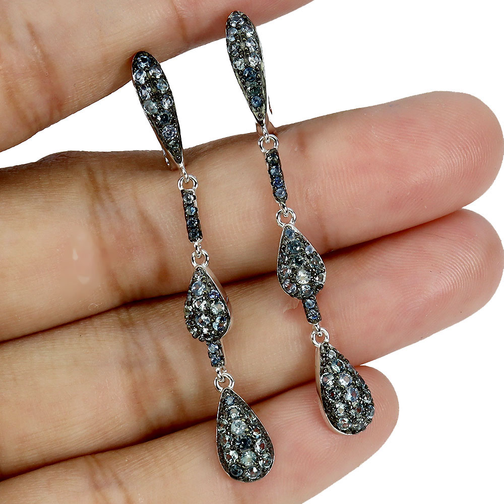 Srebrne delikatne eleganckie 925 kolczyki naturalne niebieskie szafiry 4