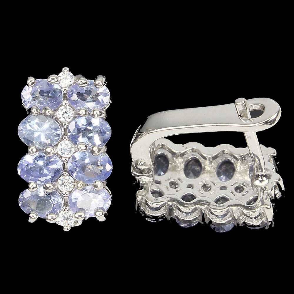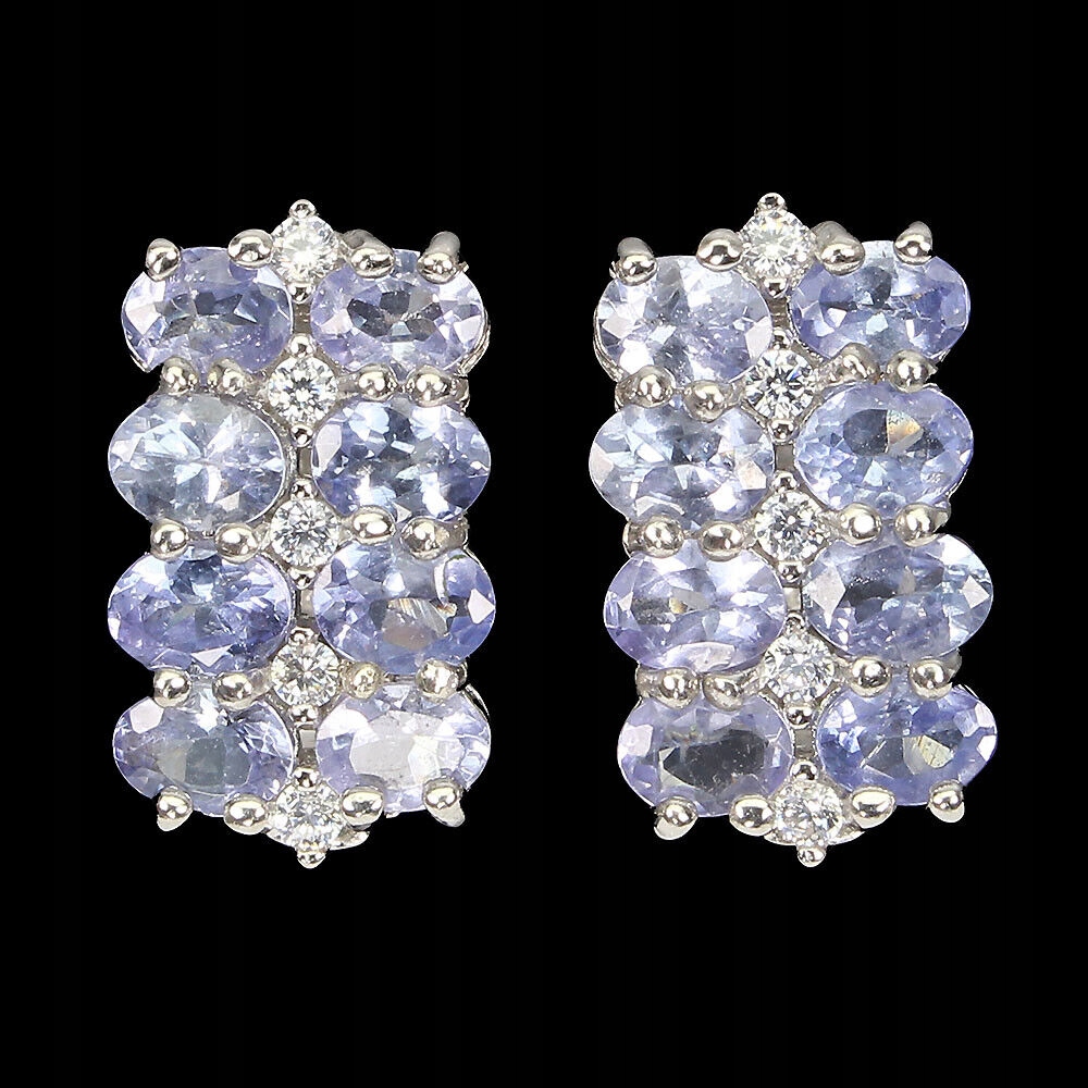 Oferujemy Państwu nowe, pozłacane białym złotem 14K, srebrne próba 925 kolczyki z naturalnymi tanzanitami i cyrkoniami.