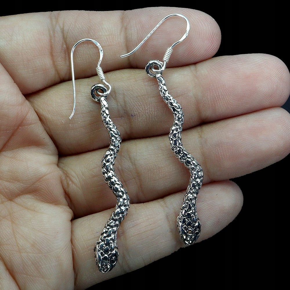 Srebrne delikatne wiszące eleganckie kolczyki węże 925 4