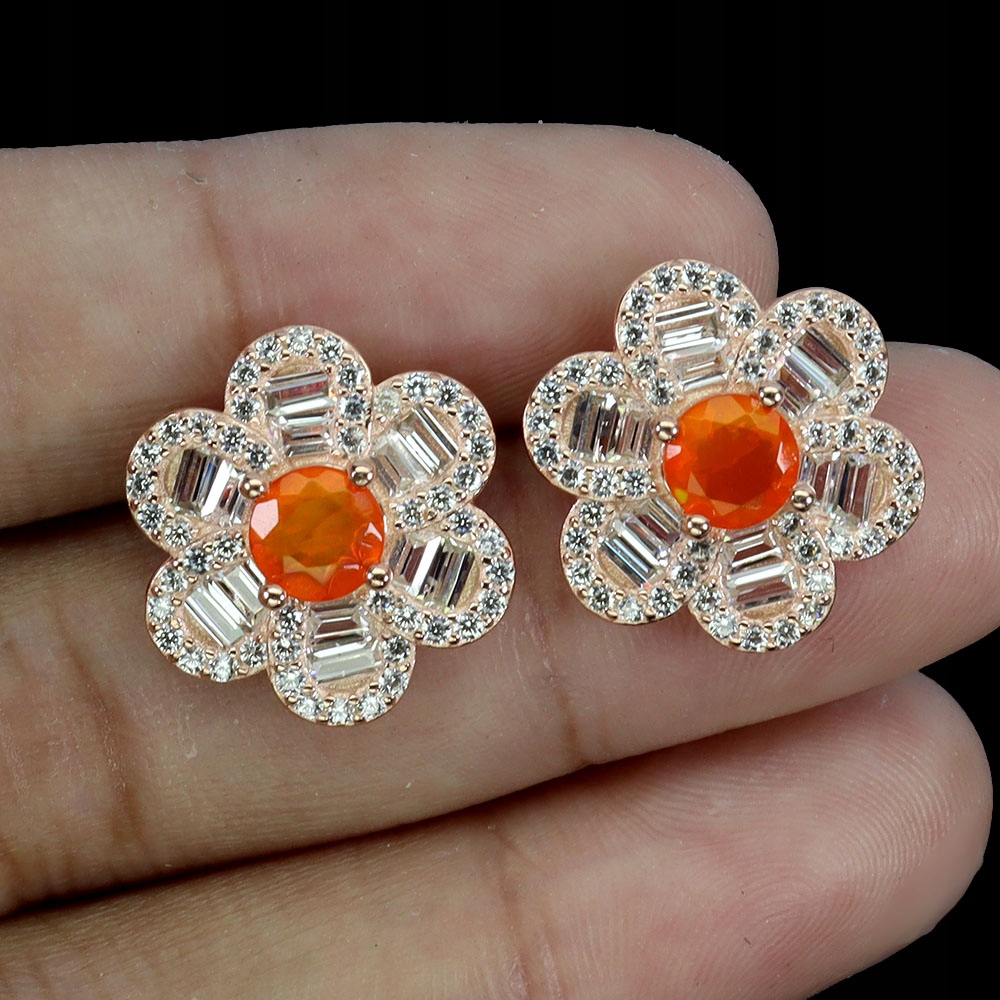 Srebrne eleganckie kolczyki cyrkonie opale pomarańczowe naturalne kwiat 5