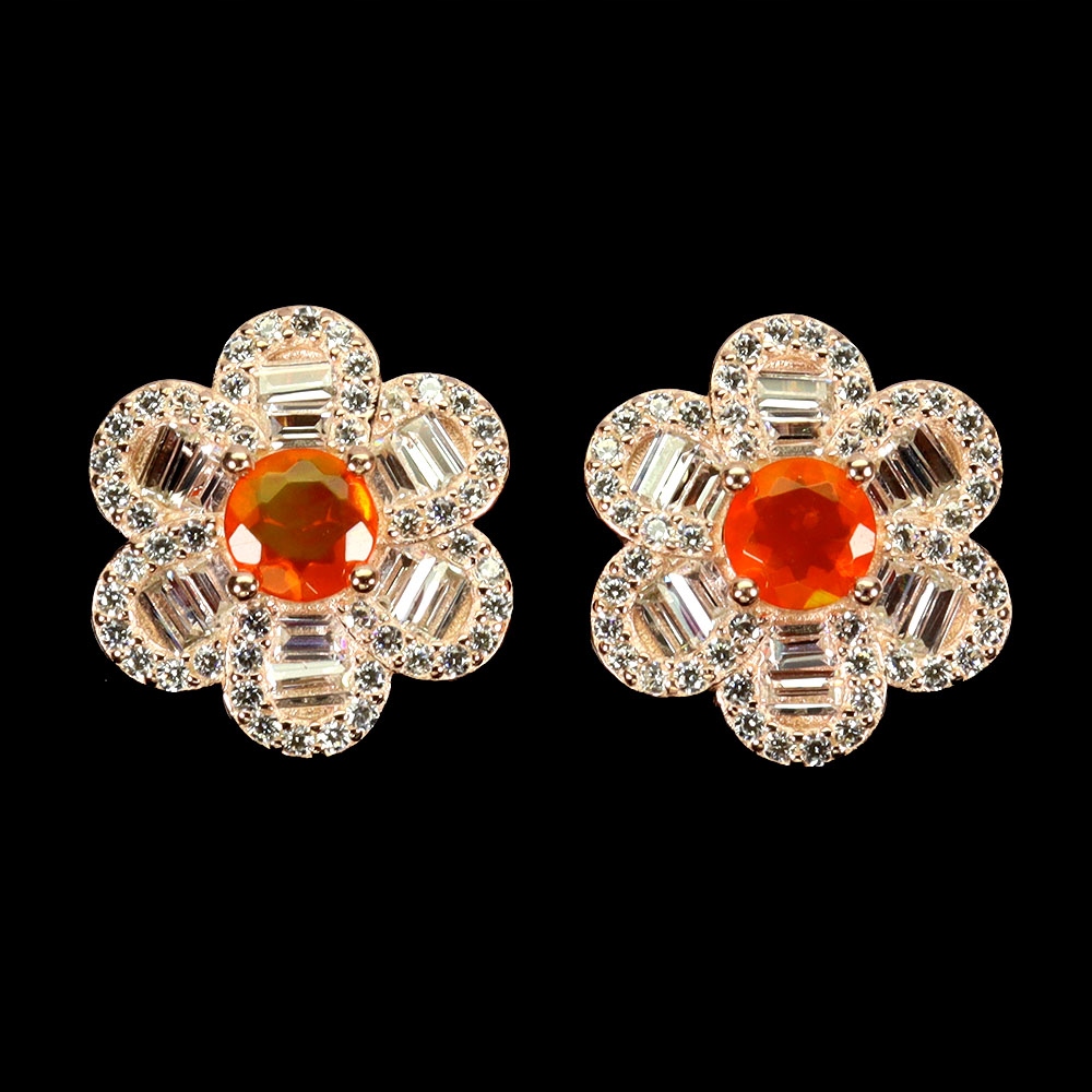 Oferujemy Państwu pozłacane 14K różowym złotem, srebrne - próba 925 - kolczyki z naturalnymi opalami pomarańczowymi i cyrkoniami.