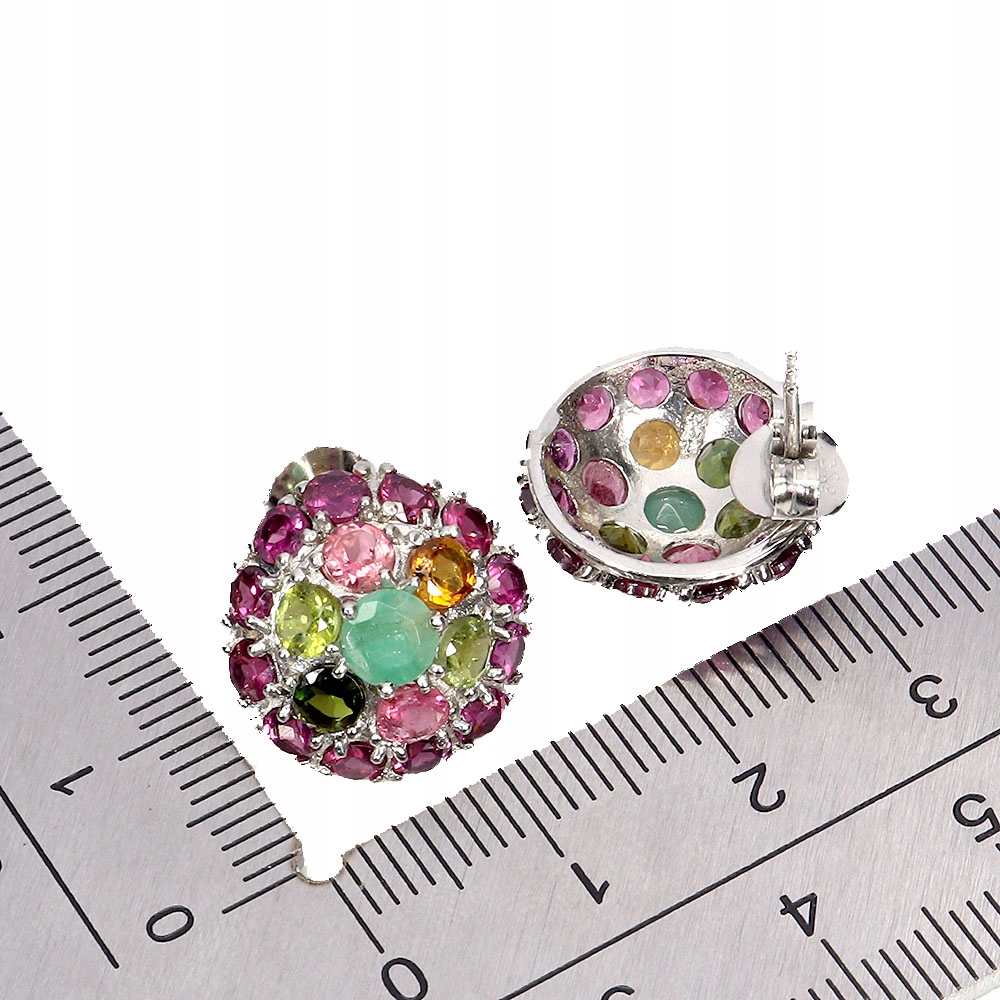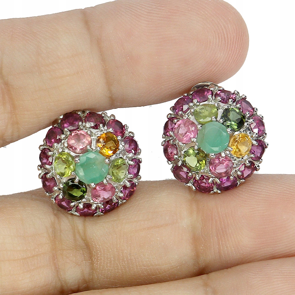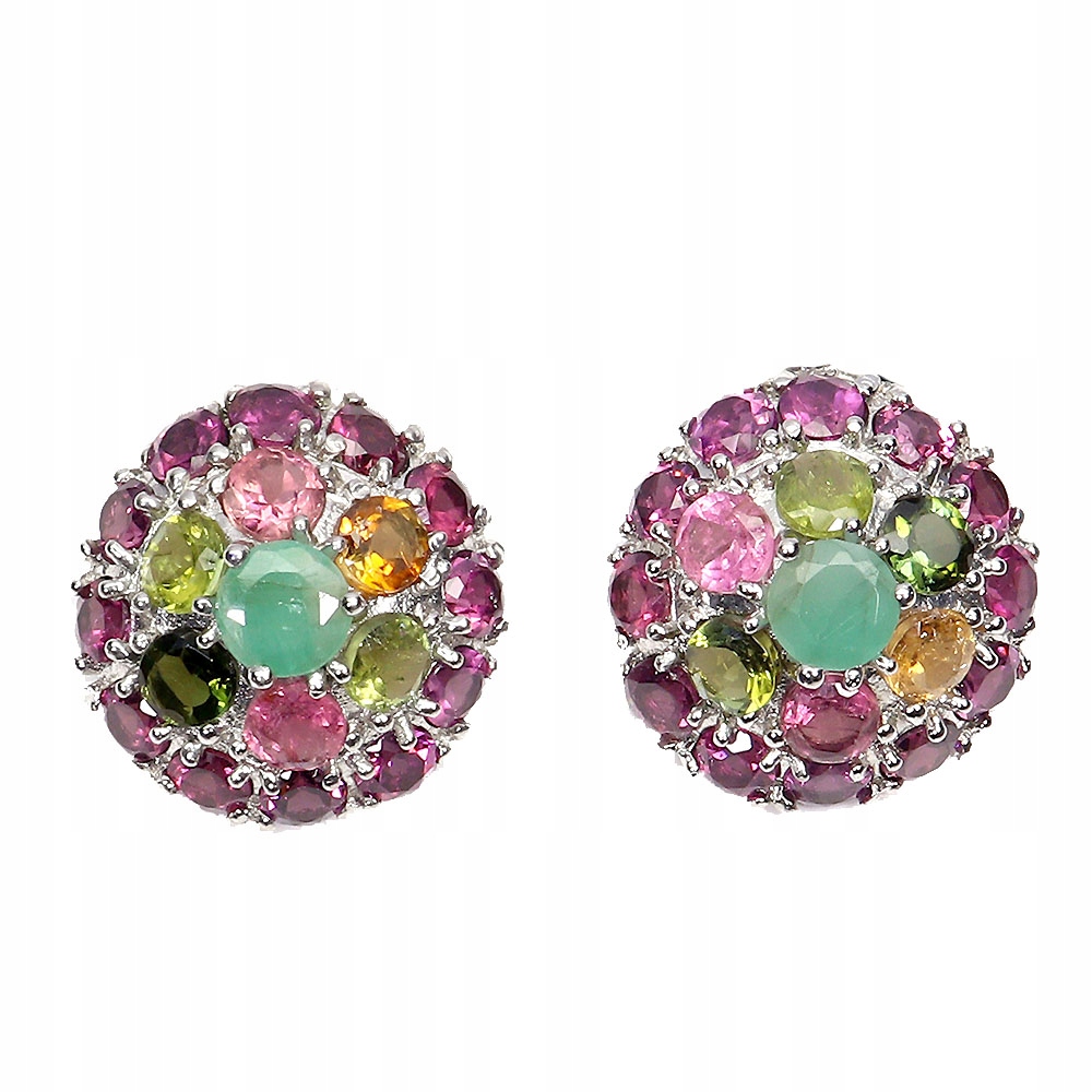 Srebrne eleganckie kolczyki natural turmaliny granaty rodolity szmaragdy 2