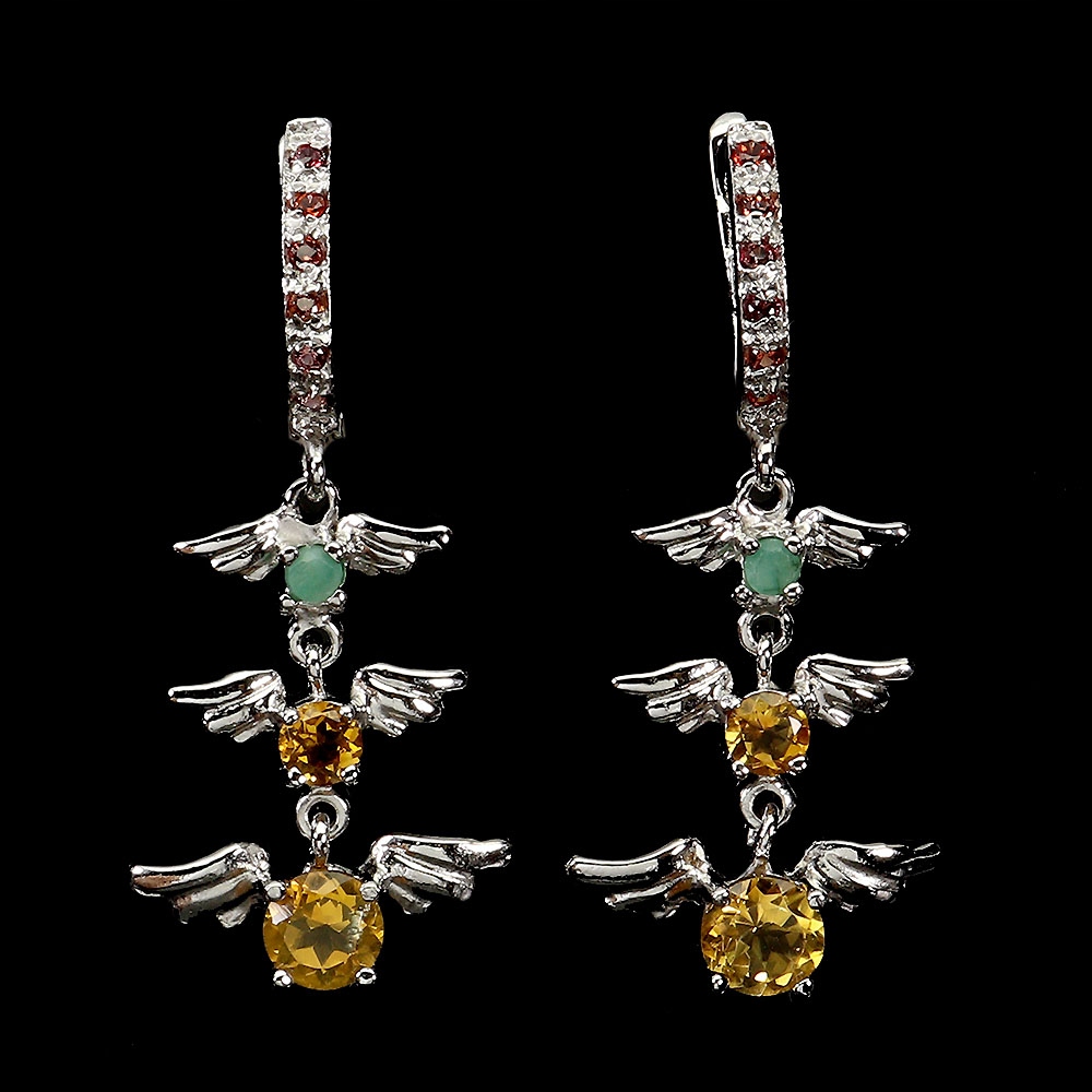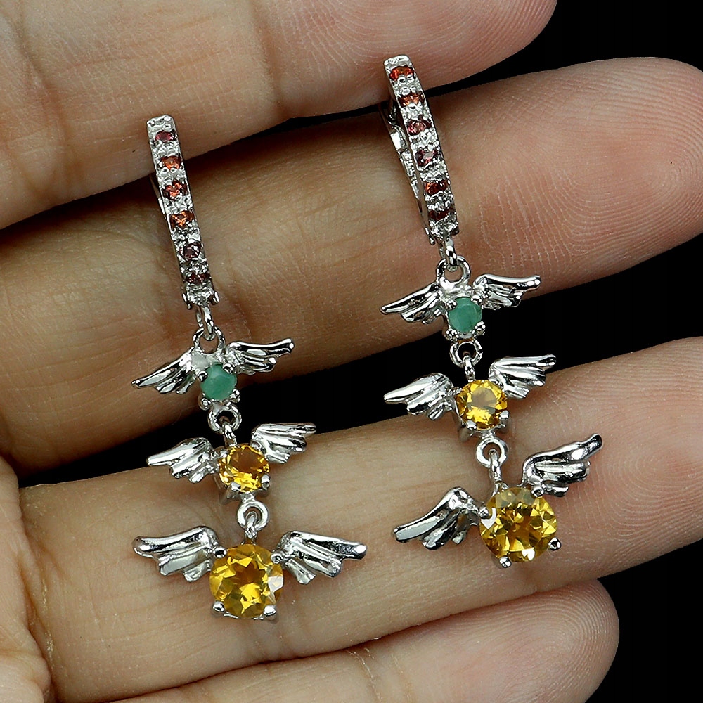 Oferujemy Państwu srebrne - próba 925 - kolczyki pozłacane 14K białym złotem z naturalnymi szmaragdami, szafirami Songea i cytrynami.