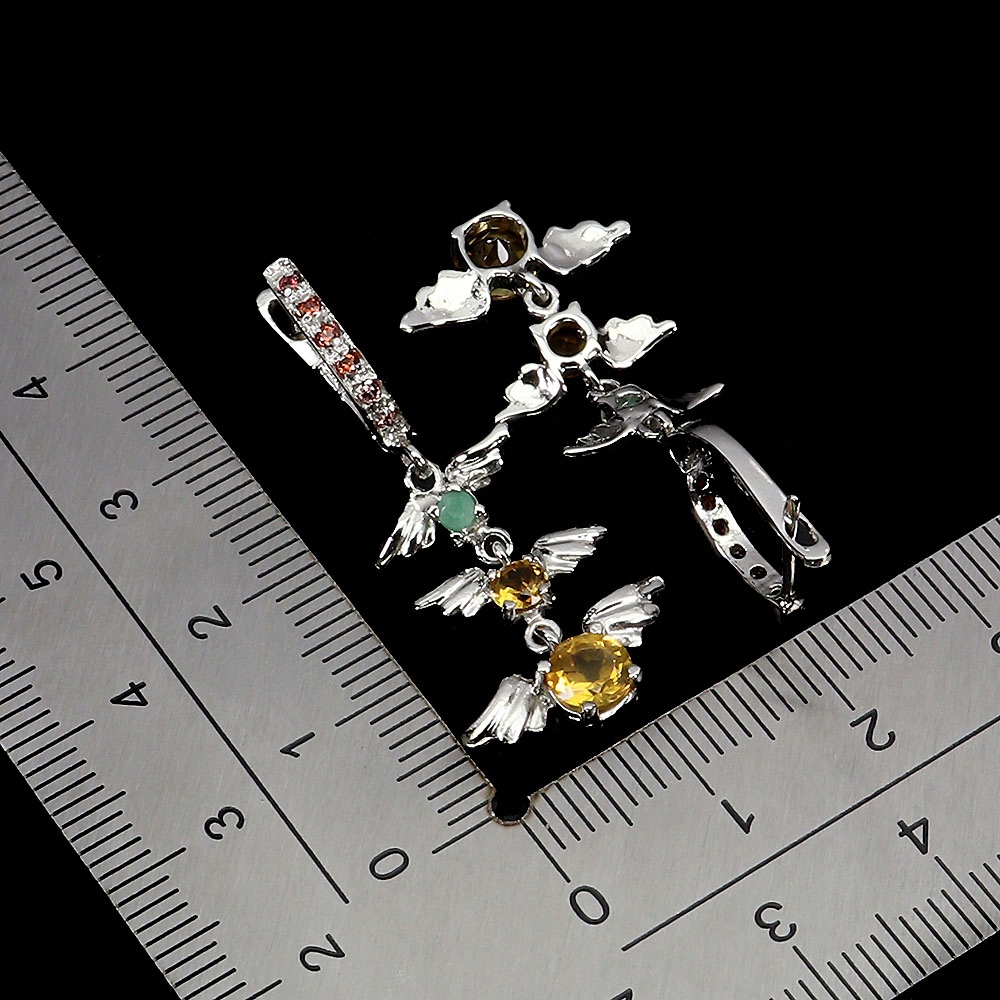 Srebrne eleganckie kolczyki naturalne szmaragdy cytryny szafiry Songea 1