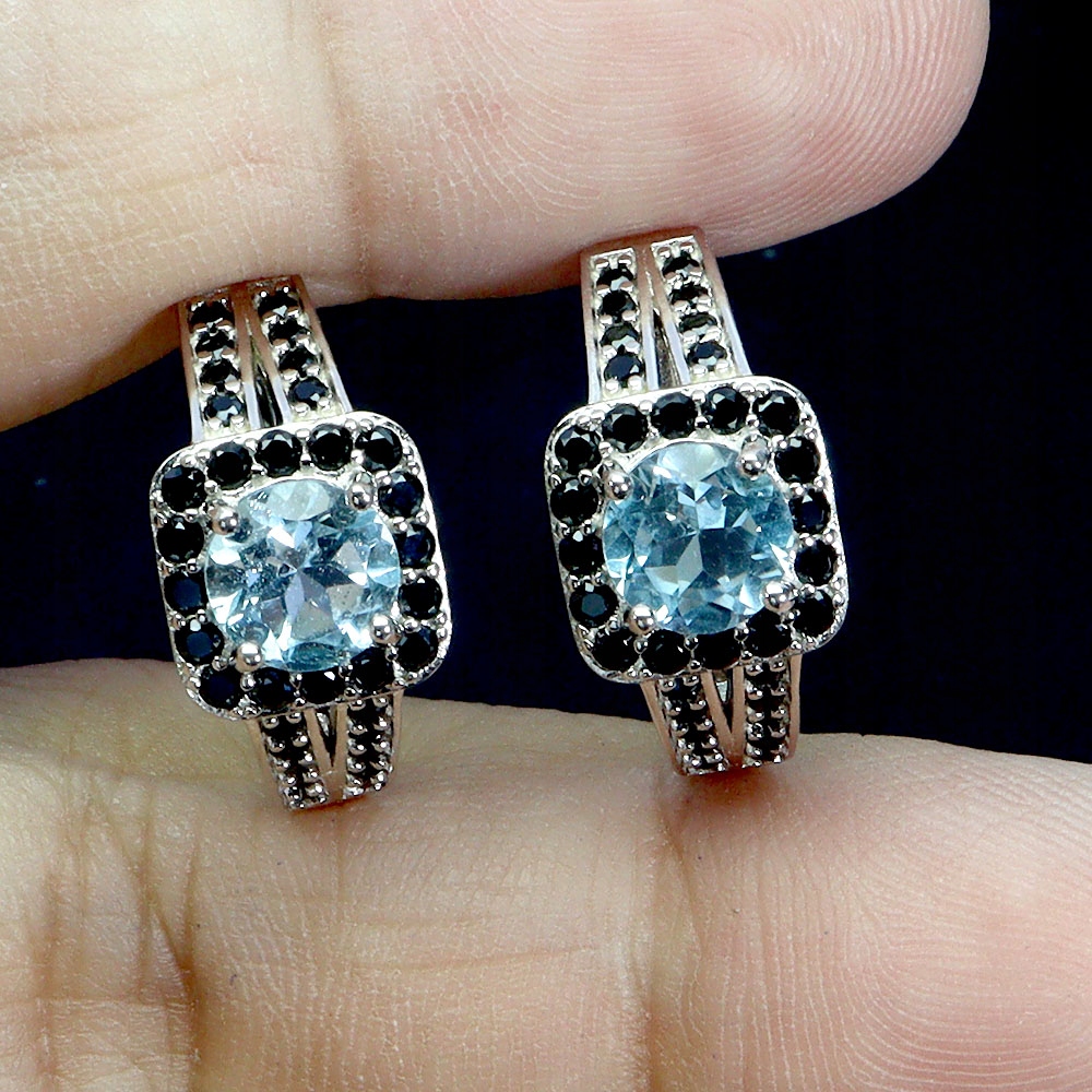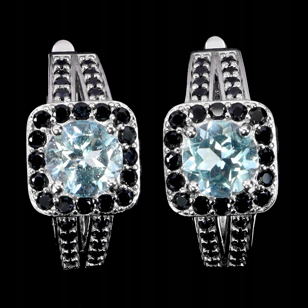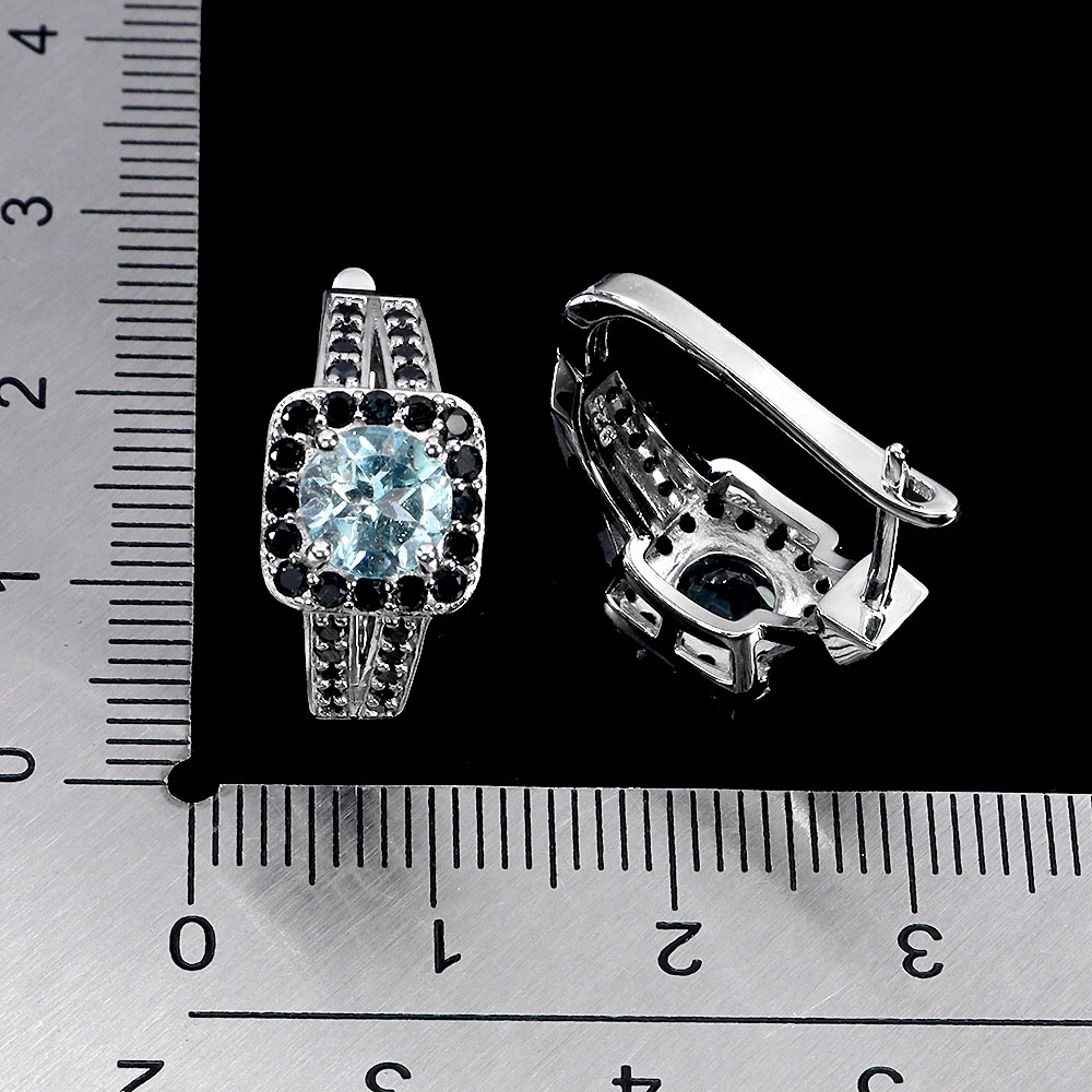 Srebrne eleganckie kolczyki naturalne topazy sky blue czarne spinele 4