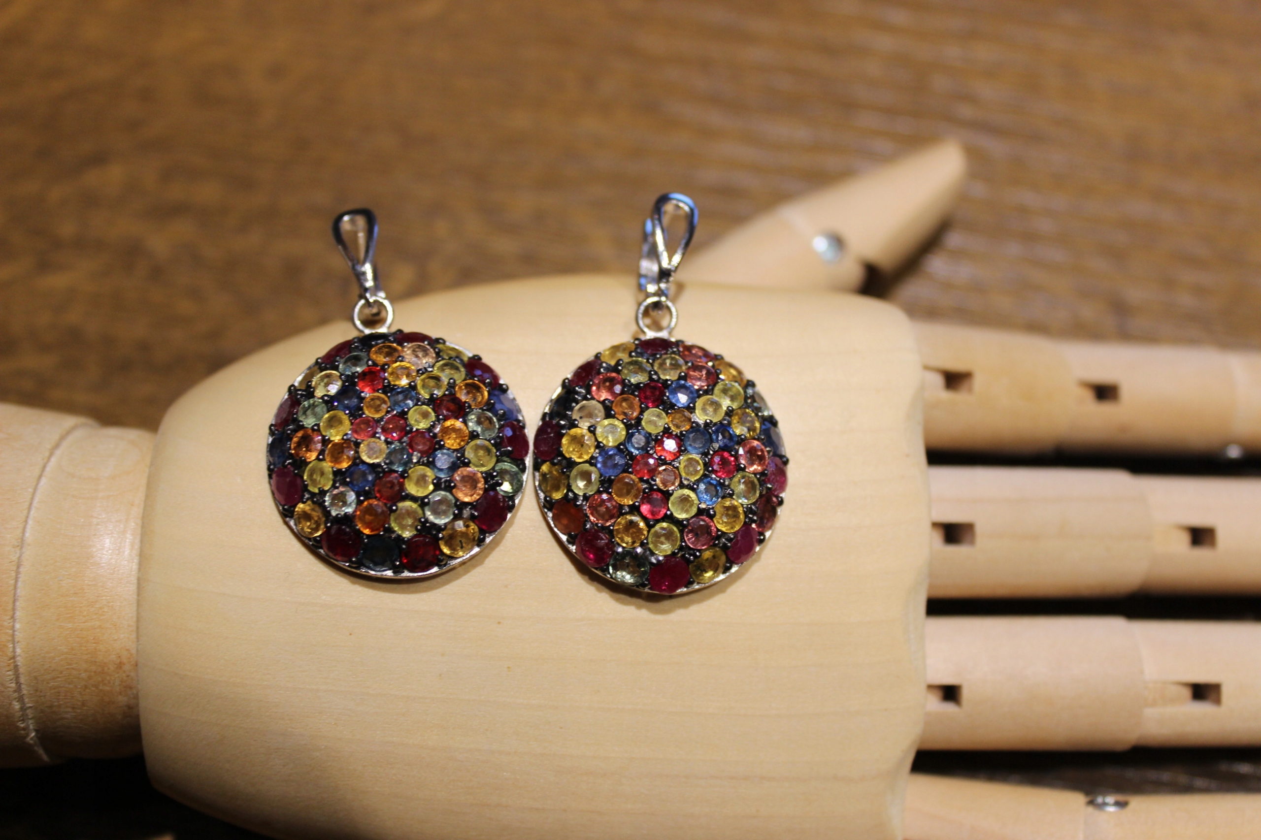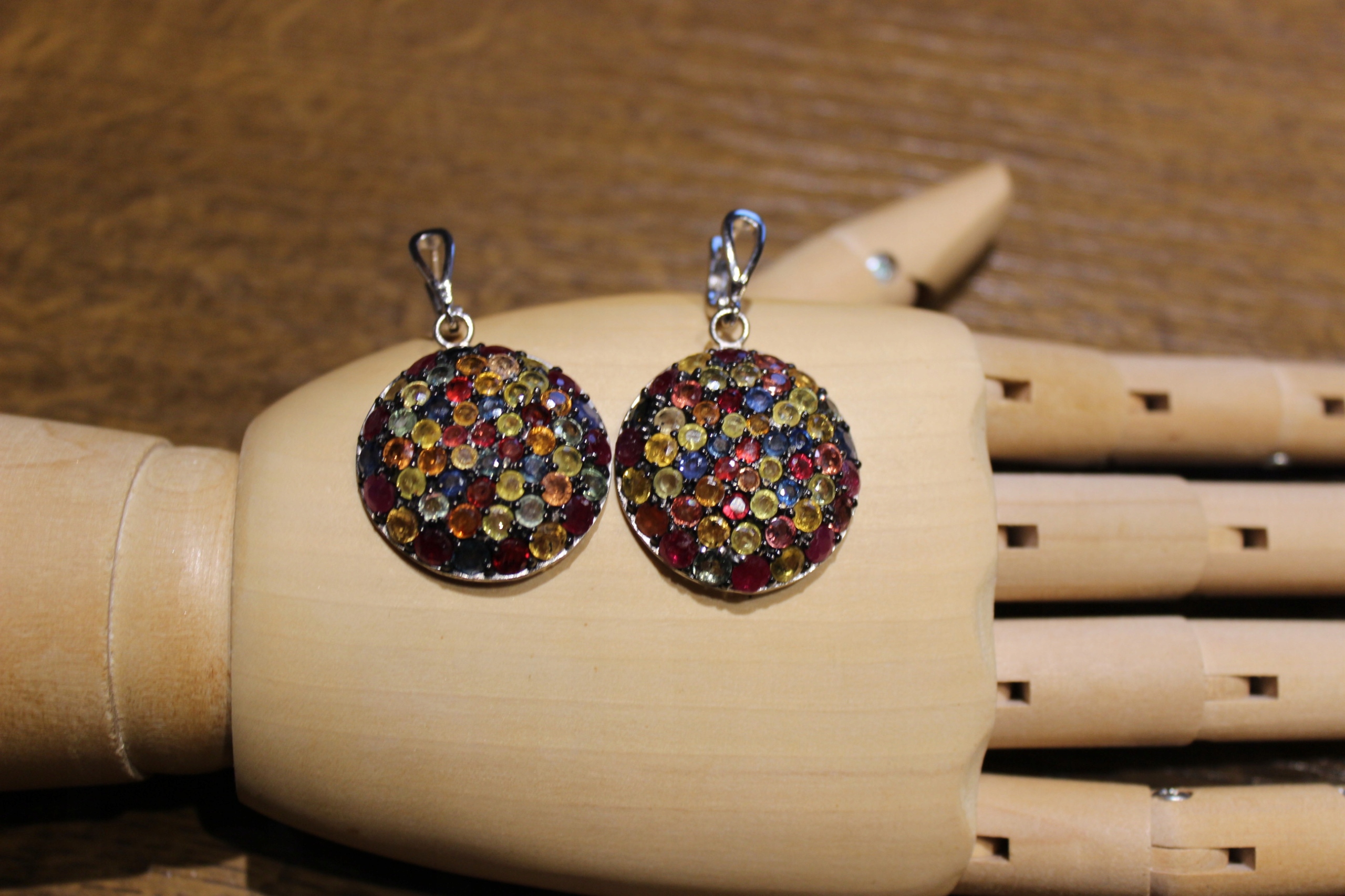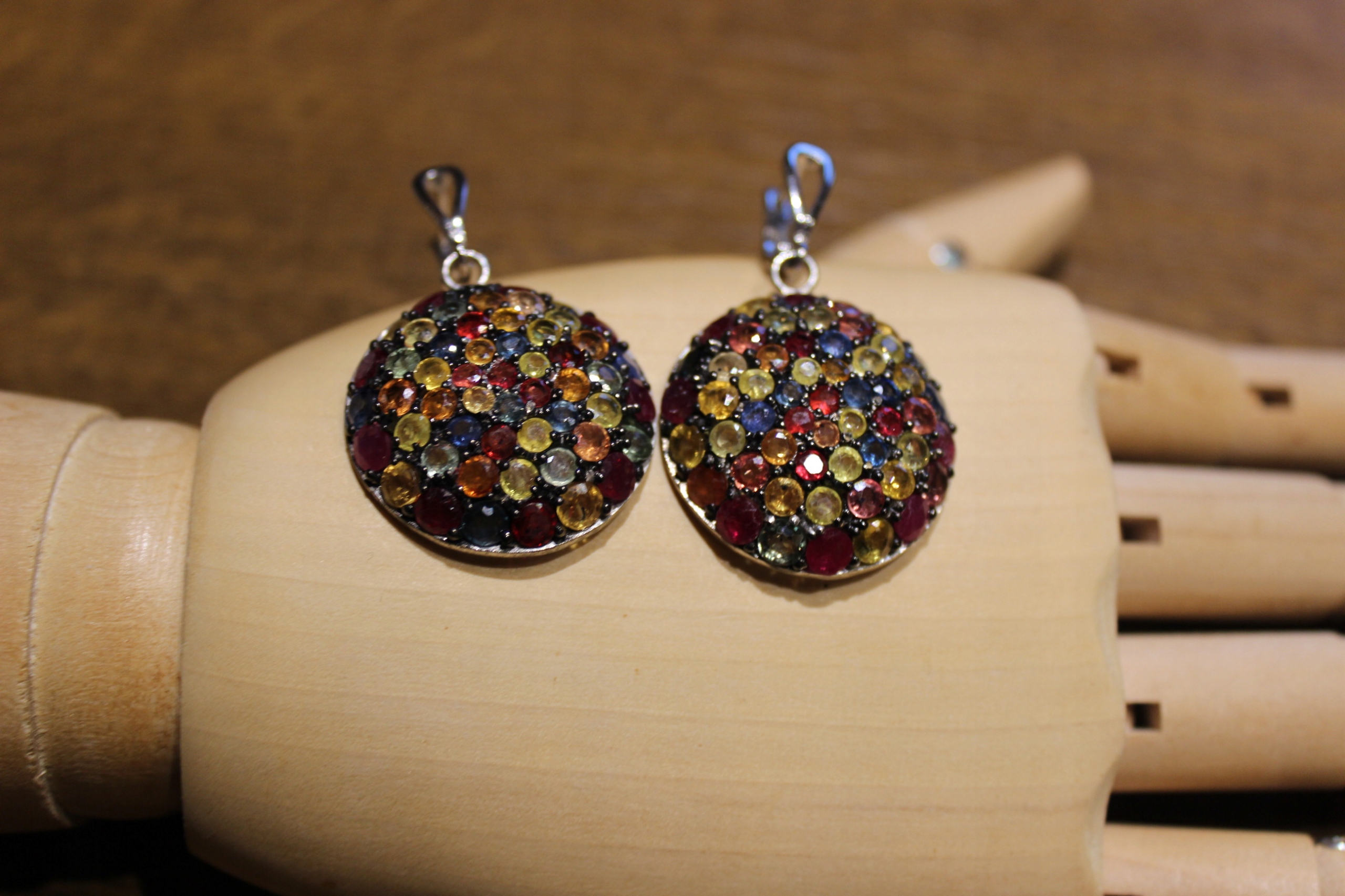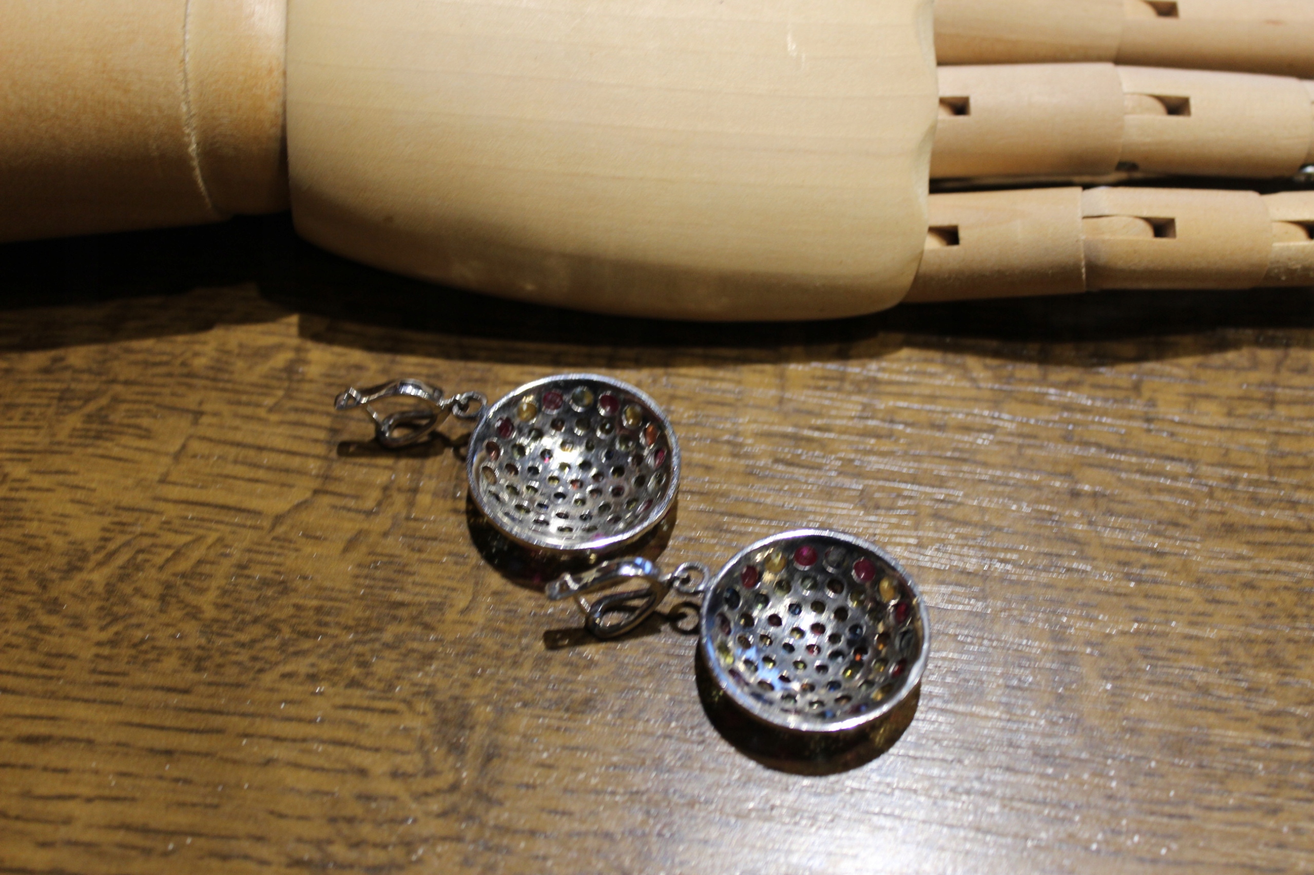 oferujemy Państwu nowe pozłacane 14K białym złotem, srebrne próba 925 kolczyki z naturalnymi rubinami i szafirami Songea.