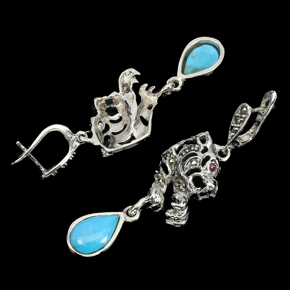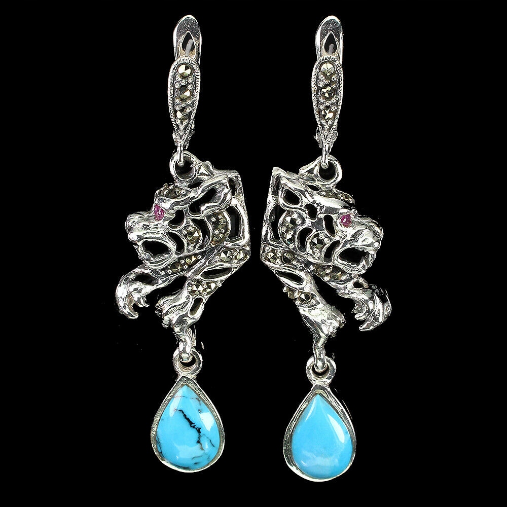 Oferujemy Państwu nowe, srebrne - próba 925 kolczyki z naturalnymi turkusami, rubinami i markazytami.