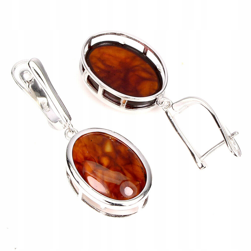 Srebrne kolczyki naturalne bursztyny 925 2