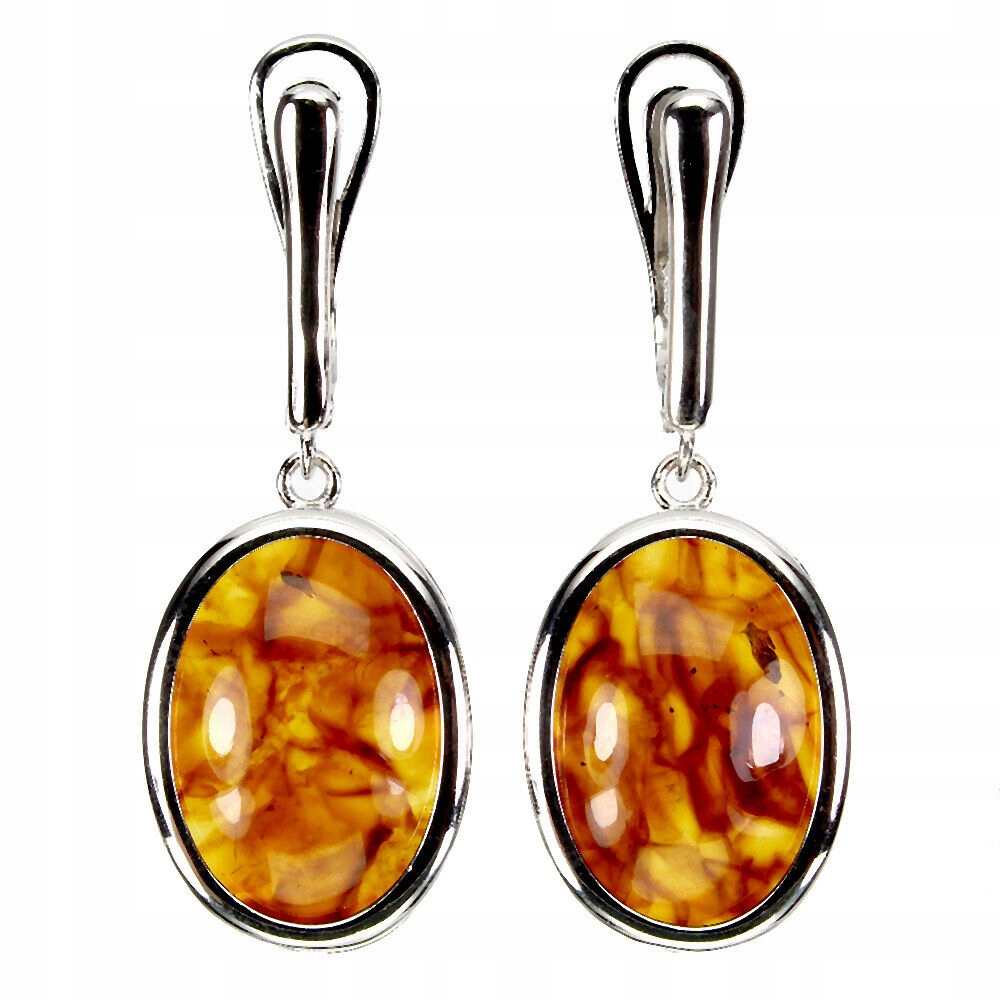 oferujemy Państwu nowe, pozłacane białym złotem 14K, srebrne - próba 925 kolczyki z naturalnymi bursztynami.