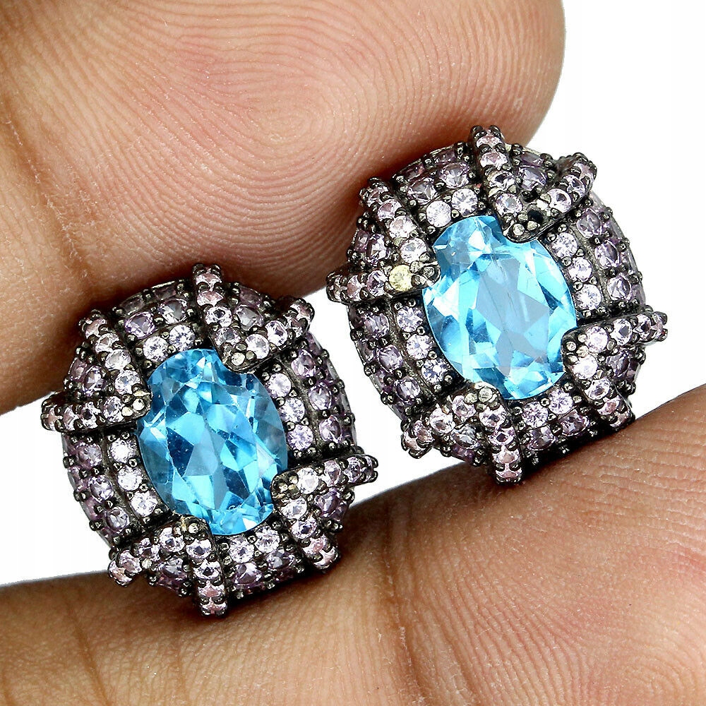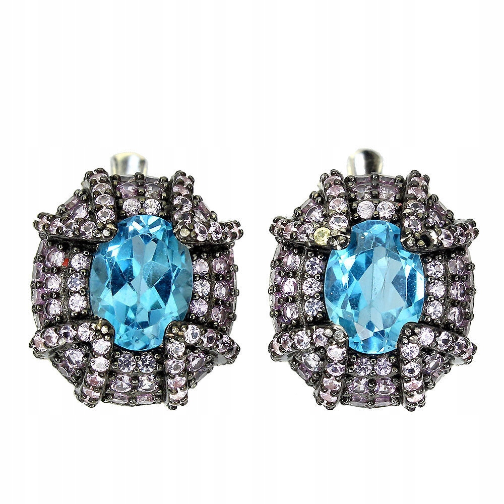 Srebrne kolczyki naturalne swiss topazy szafiry 3