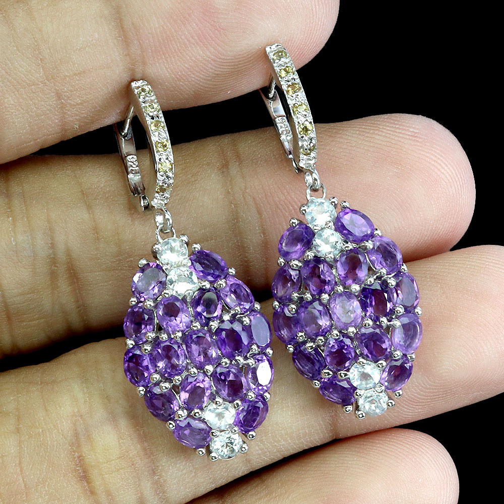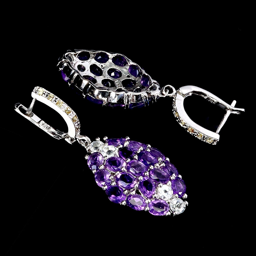 Srebrne zjawiskowe kolczyki naturalne szafiry Songea ametysty akwamaryny 3