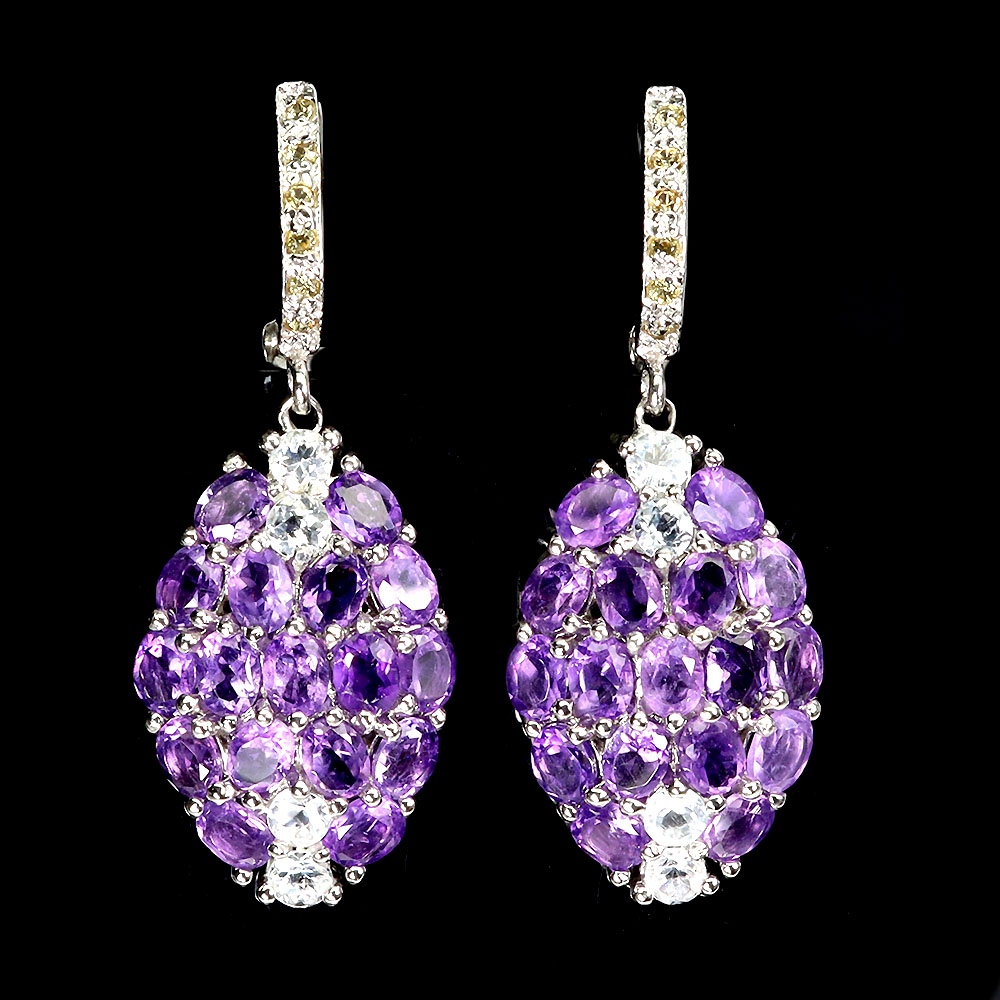 Oferujemy Państwu pozłacane białym złotem 14K, srebrne - próba 925 - kolczyki z naturalnymi ametystami, akwamarynami i szafirami Songea.
