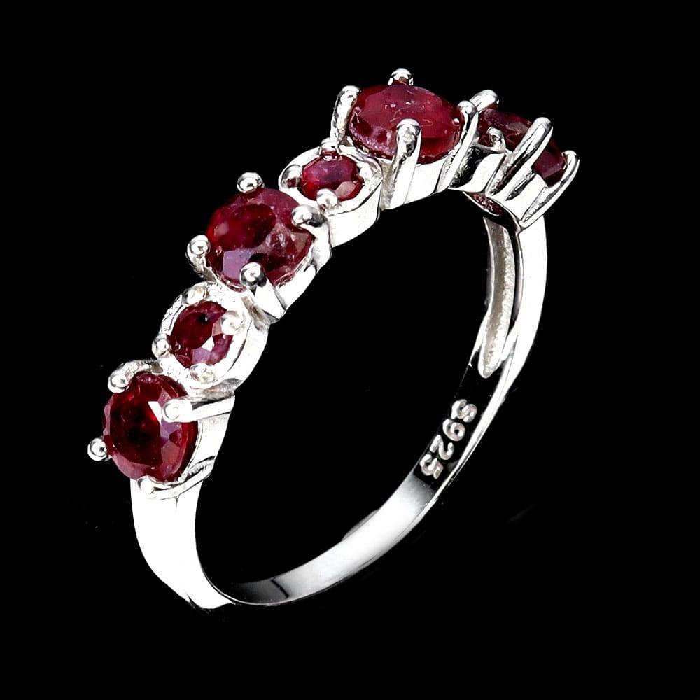 Srebrny delikatny elegancki pierścionek naturalne rubiny r 14