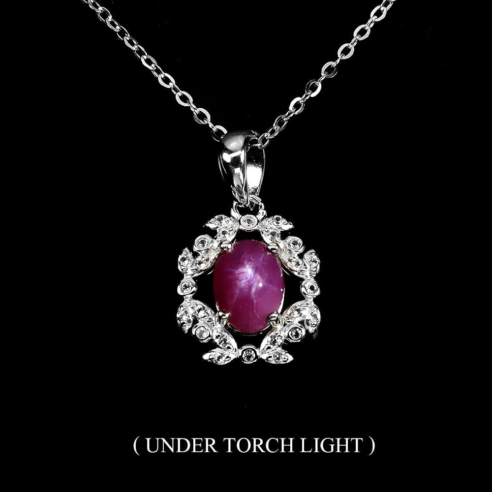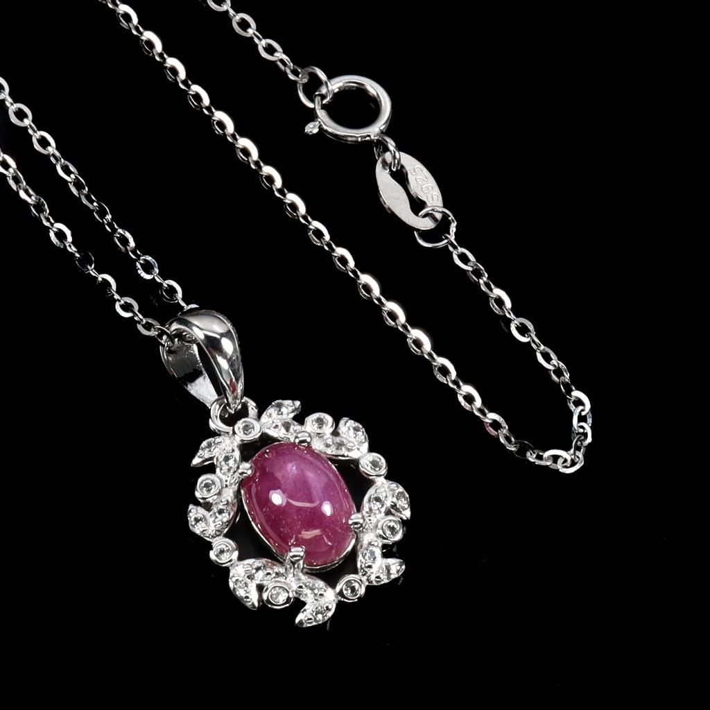 Oferujemy Państwu pozłacany 14K białym złotem, srebrny - próba 925 naszyjnik z naturalnym rubinem gwiaździstym i białymi topazami.