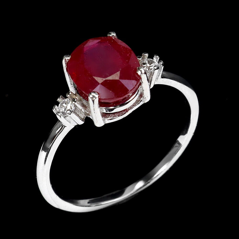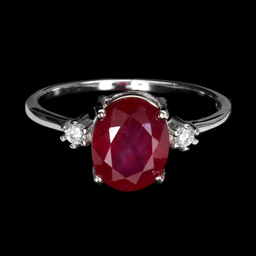 Oferujemy Państwu nowy, pozłacany białym 14K złotem, srebrny - próba 925 pierścionek z naturalnym rubinem i cyrkoniami.