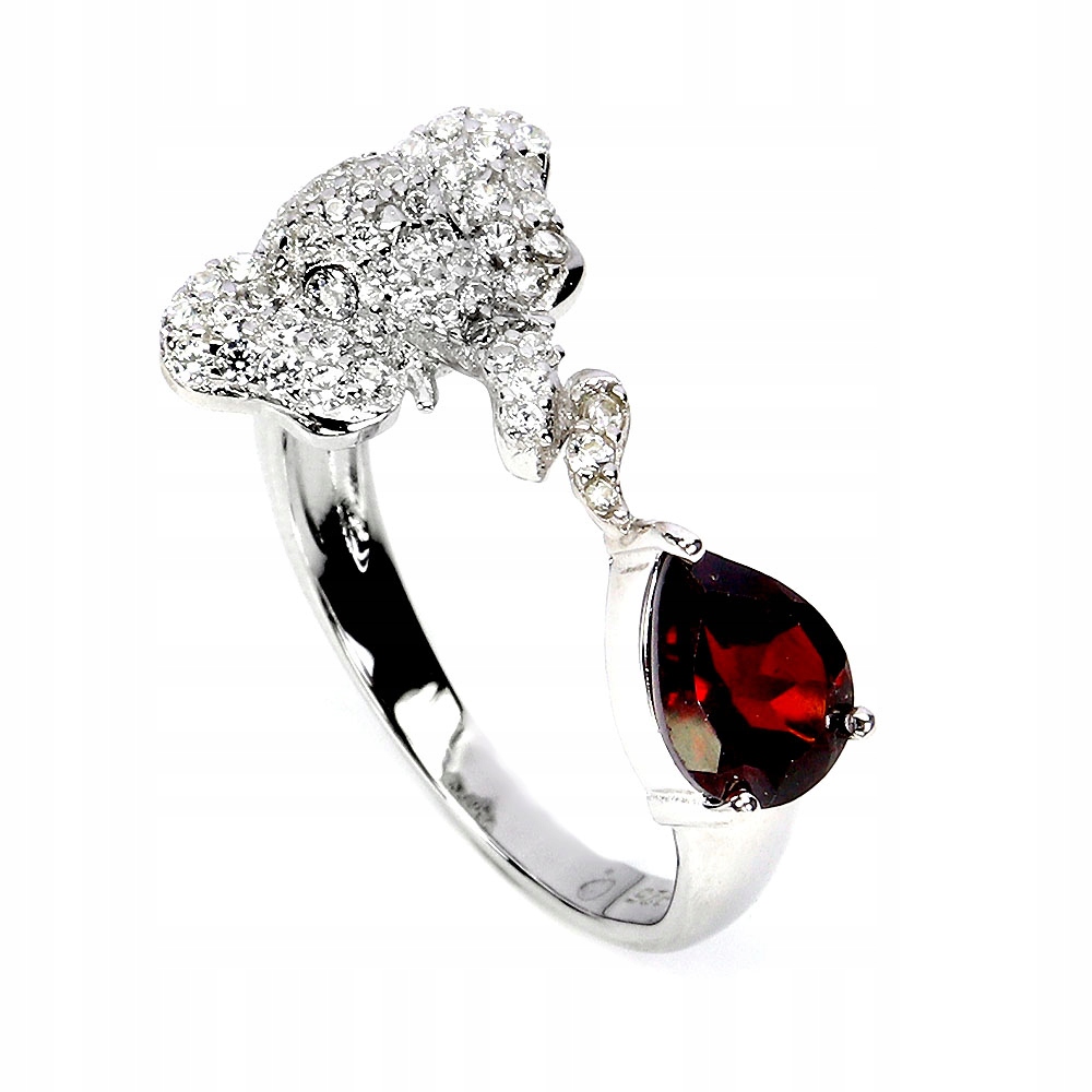 Srebrny delikatny pierścionek r 14.5 naturalny granat cyrkonie słoń