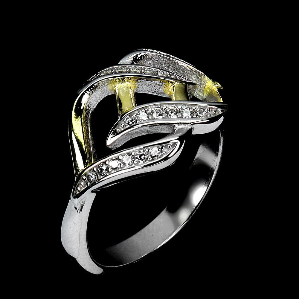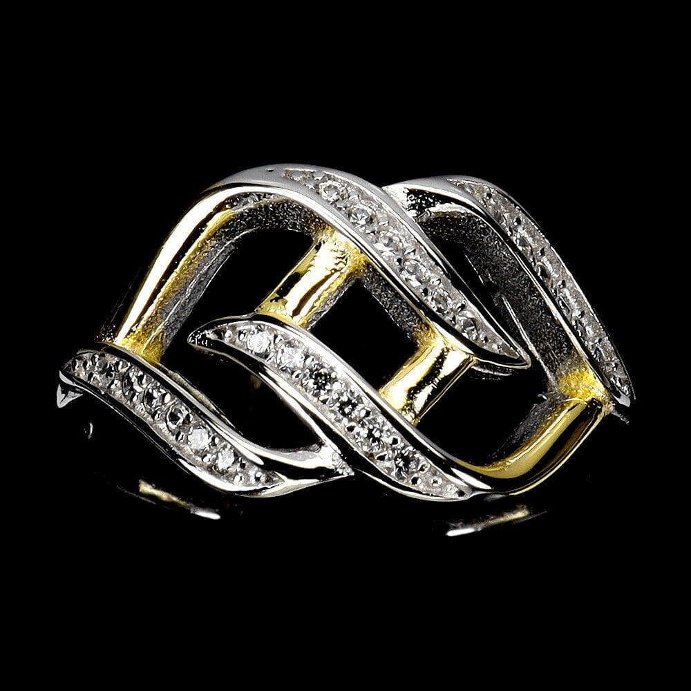Oferujemy Państwu nowy, pozłacany 14K białym i żółtym złotem, srebrny - próba 925 pierścionek z cyrkoniami AAA.