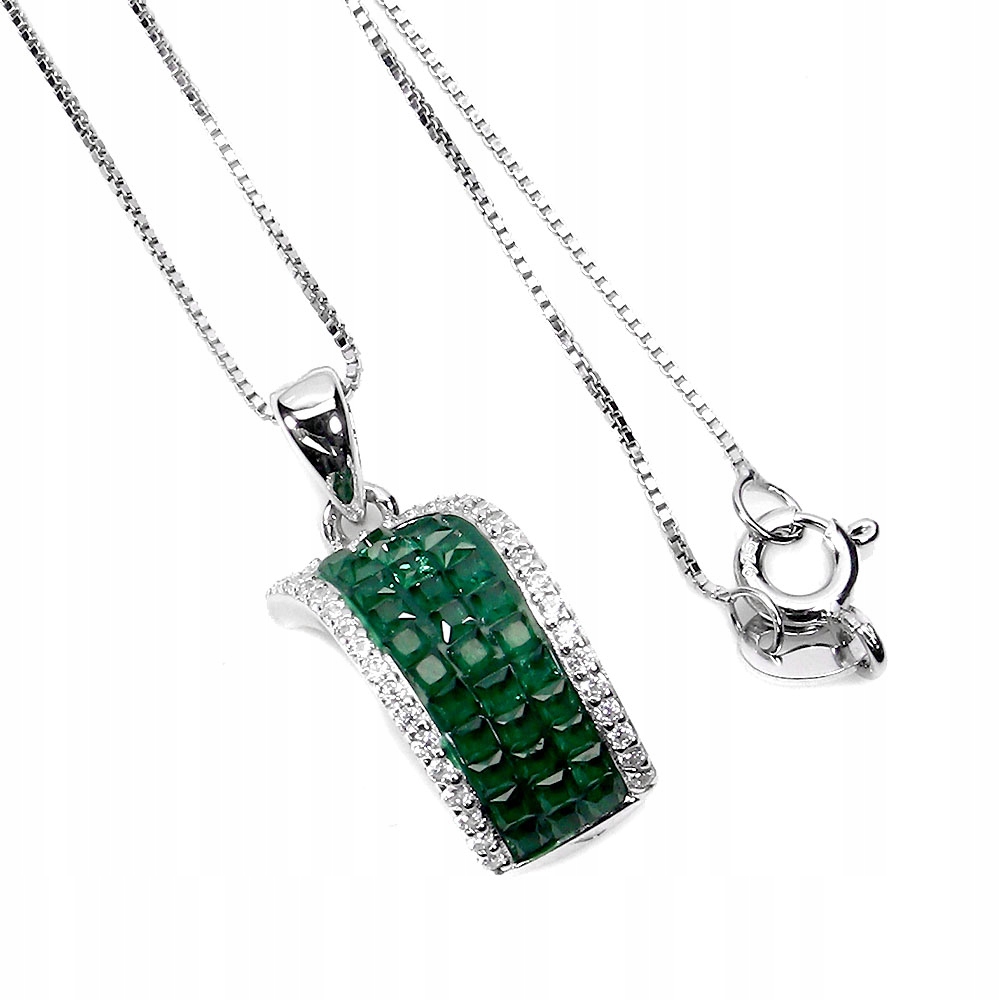 Oferujemy Państwu pozłacany 14K białym złotem, srebrny - próba 925 0 naszyjnik z zielonymi cyrkoniami.