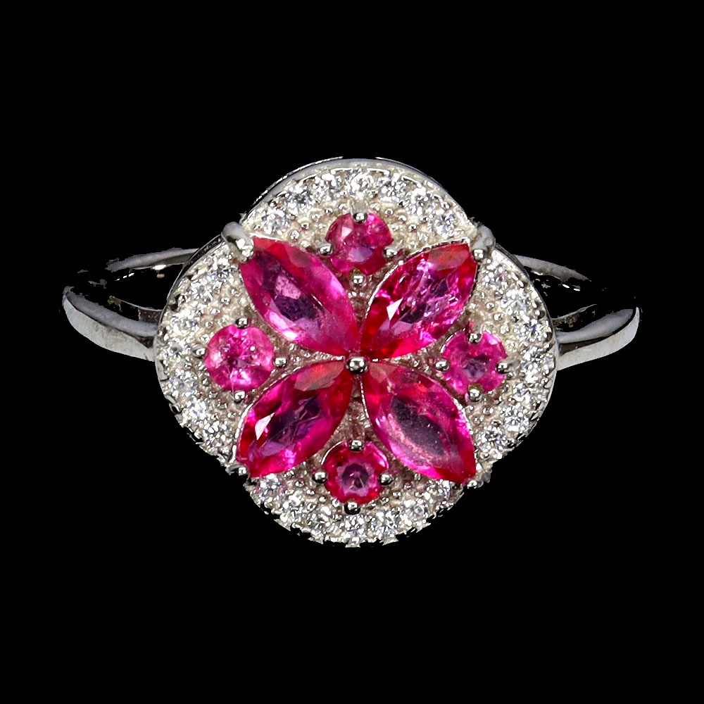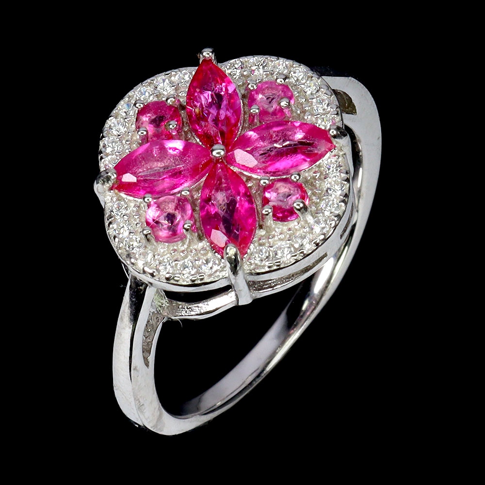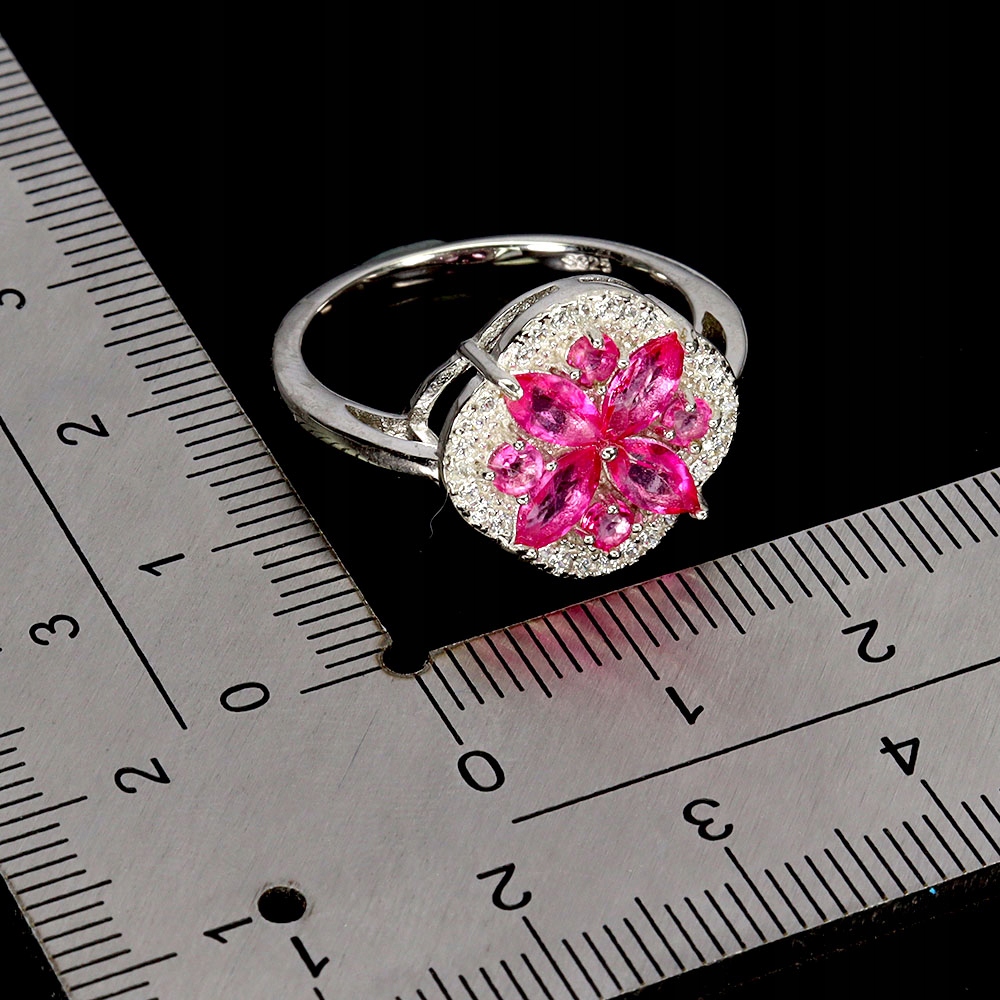 Srebrny elegancki pierścionek naturalne różowe topazy cyrkonie r 18.5