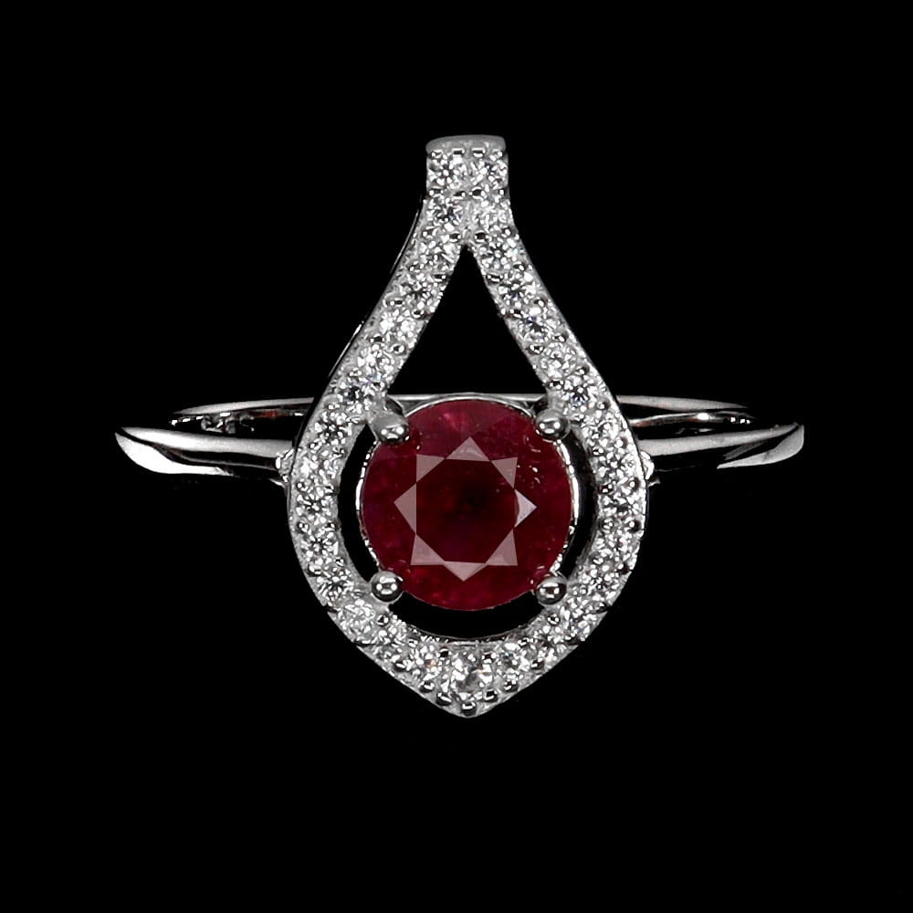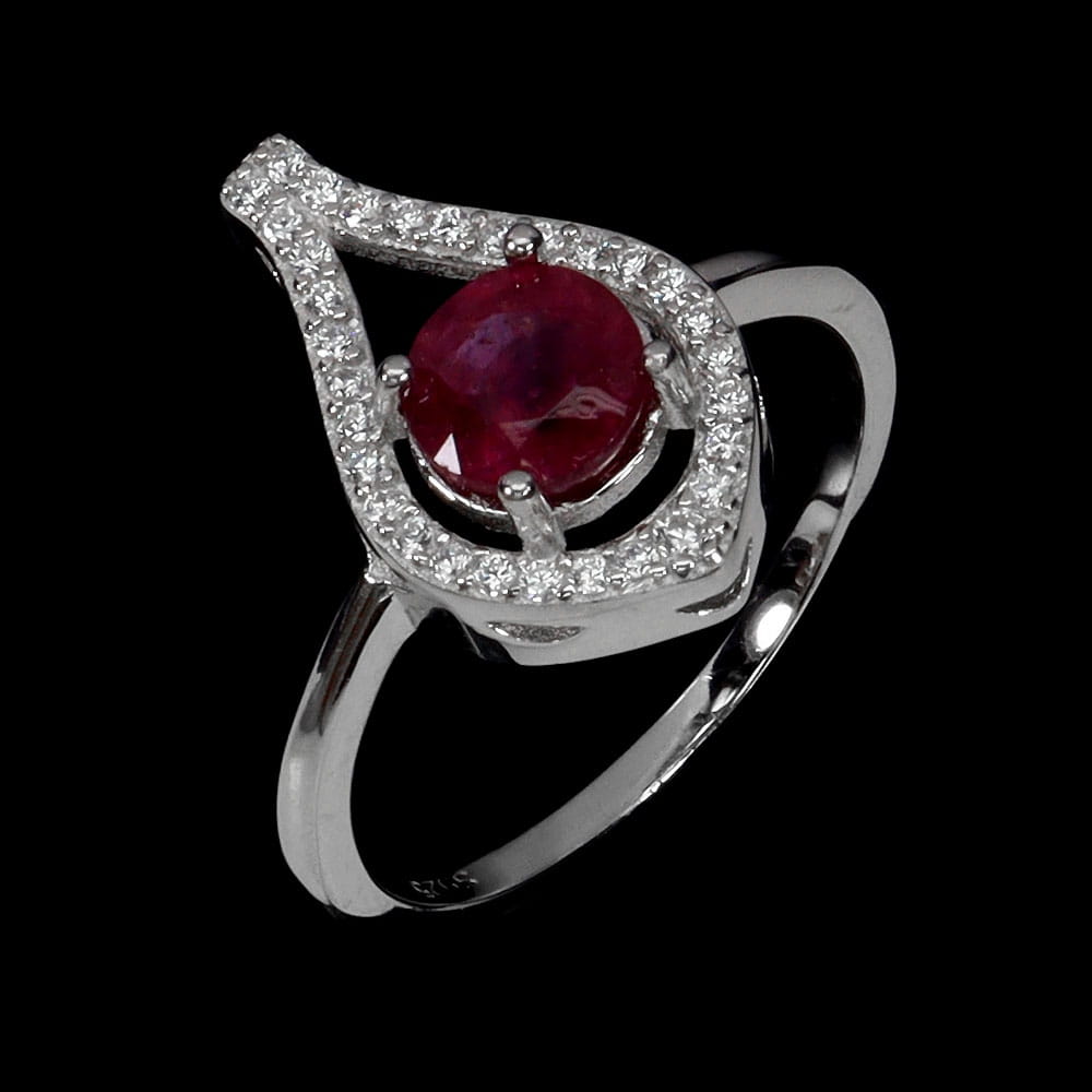 Srebrny elegancki pierścionek r 17 naturalny rubin cyrkonie