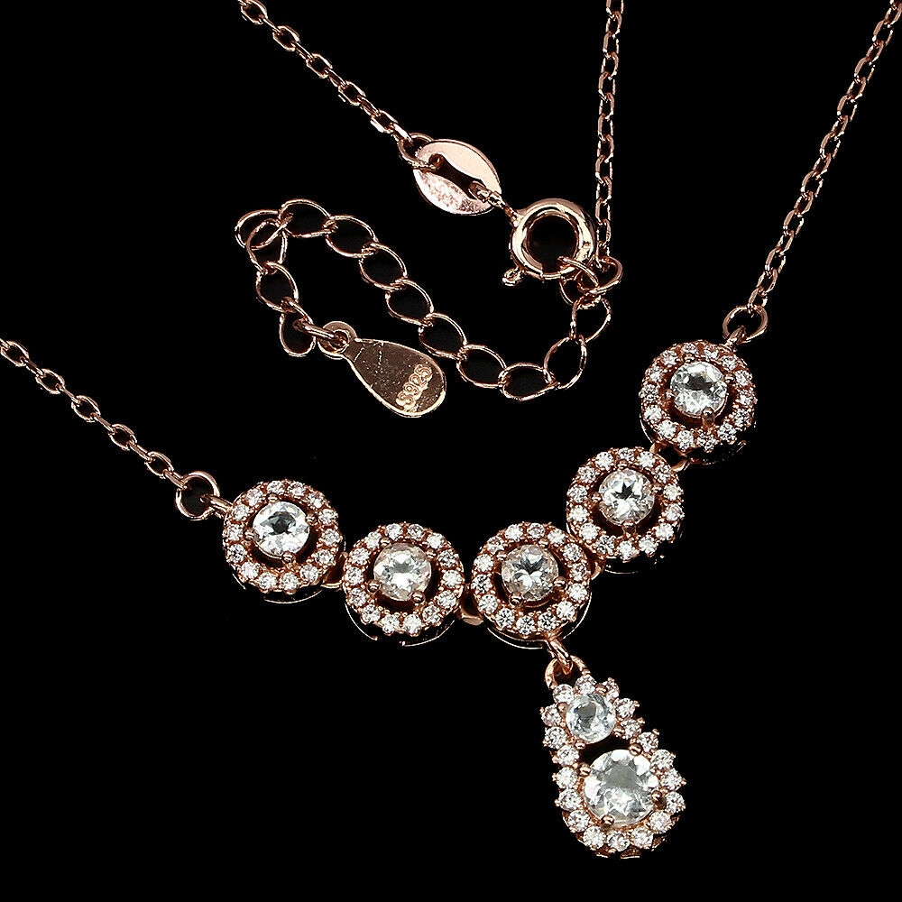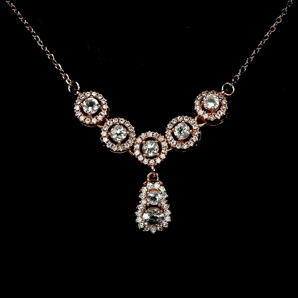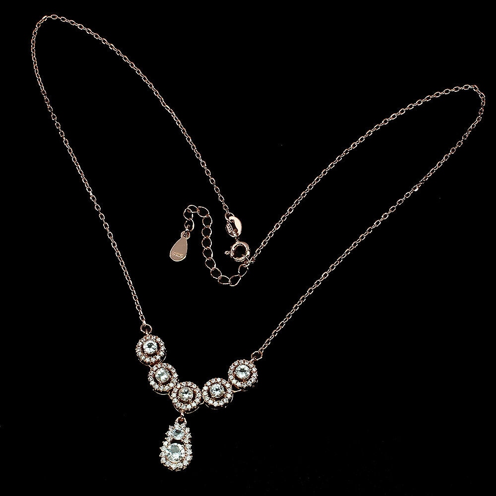 Oferujemy Państwu nowy, pozłacany 14K różowym złotem, srebrny - próba 925 naszyjnik z naturalnymi akwamarynami i cyrkoniami.