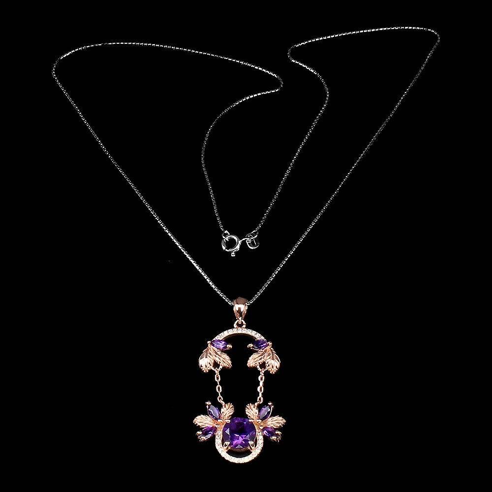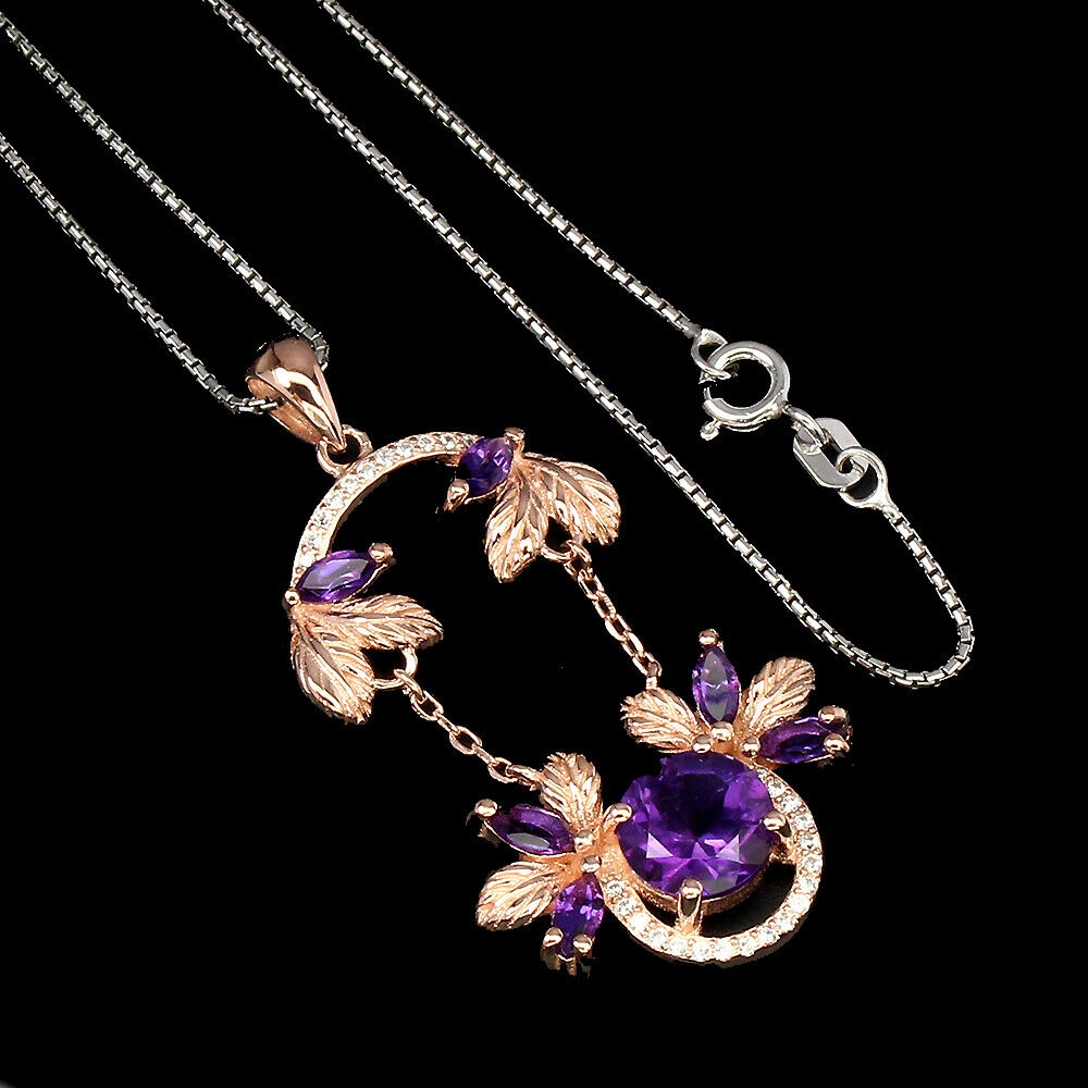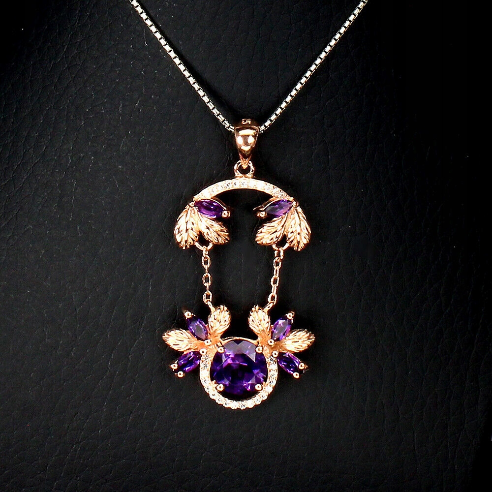 oferujemy Państwu nowy, pozłacany 14K różowym złotem, srebrny - próba 925 naszyjnik z naturalnymi ametystami i cyrkoniami.