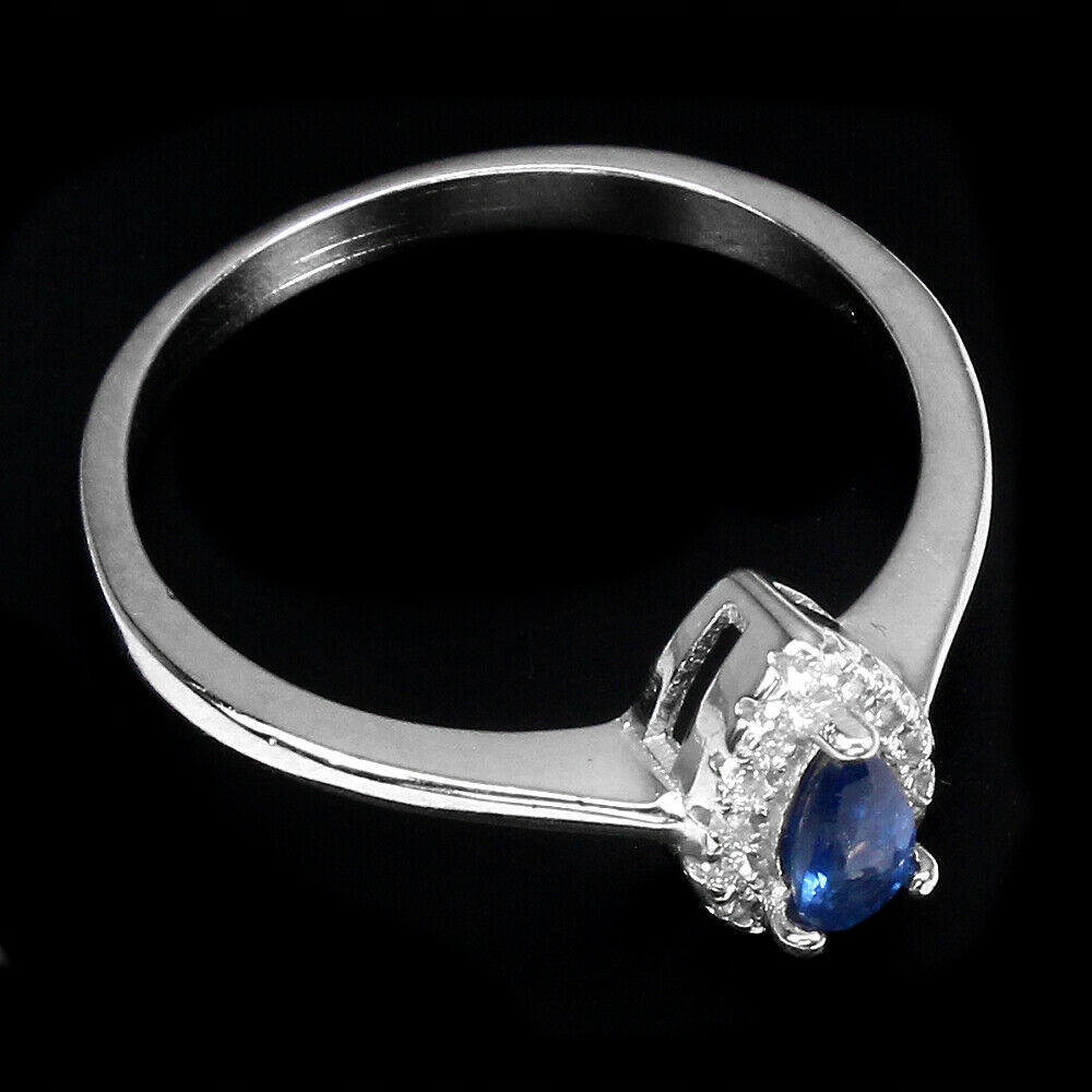 oferujemy Państwu nowy, pozłacany białym złotem 14K, srebrny - próba 925 pierścionek z naturalnym szafirem niebieskim i cyrkoniami.