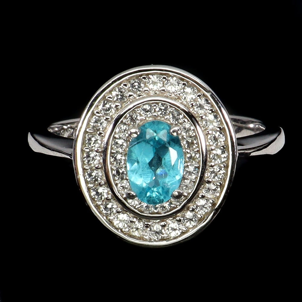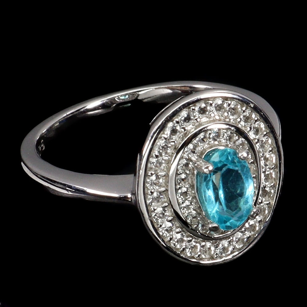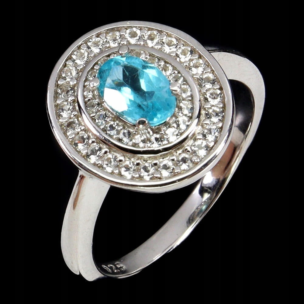 Srebrny pierścionek r 11 naturalny apatyt paraiba blue białe topazy
